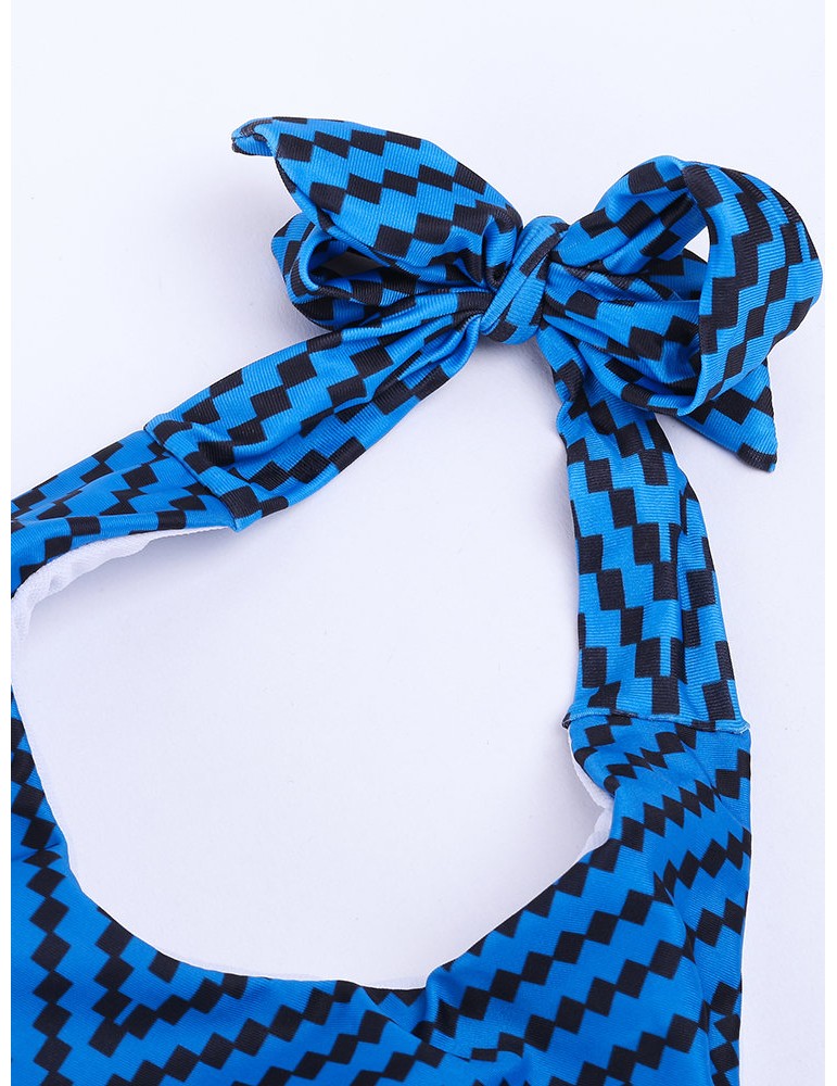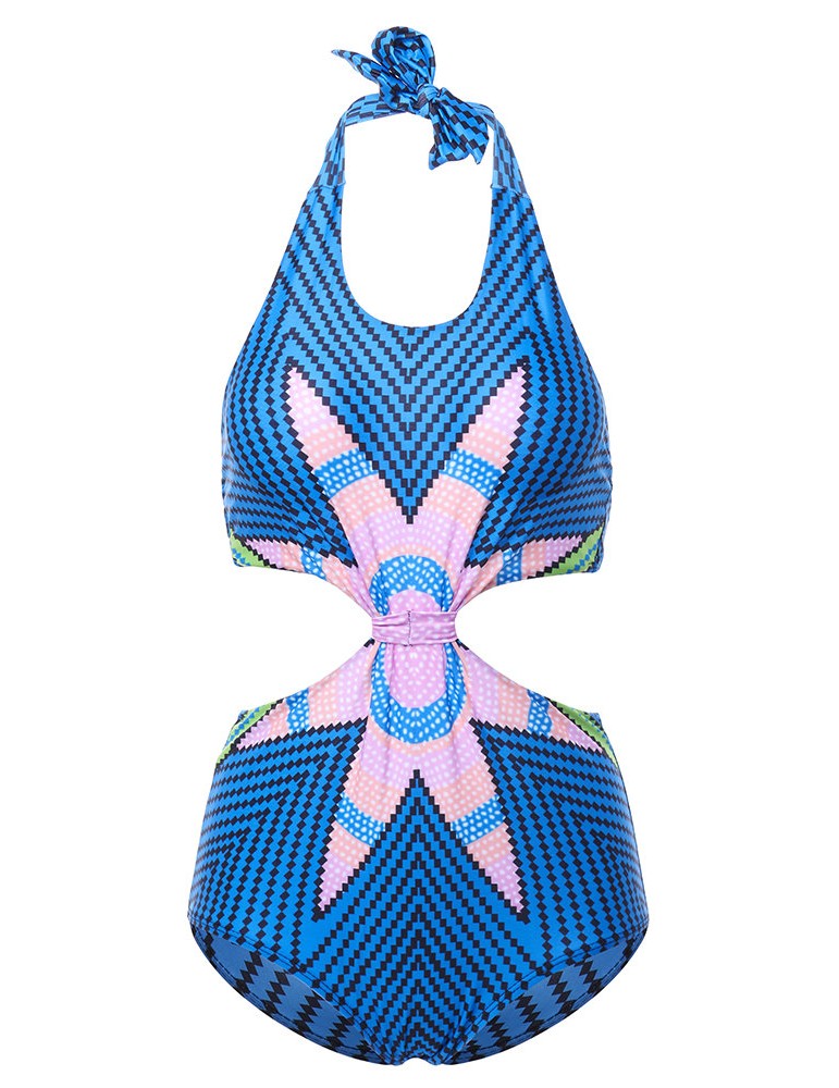 Vintage Geometric Printing Halter One Pieces Monokinis Swimwear
