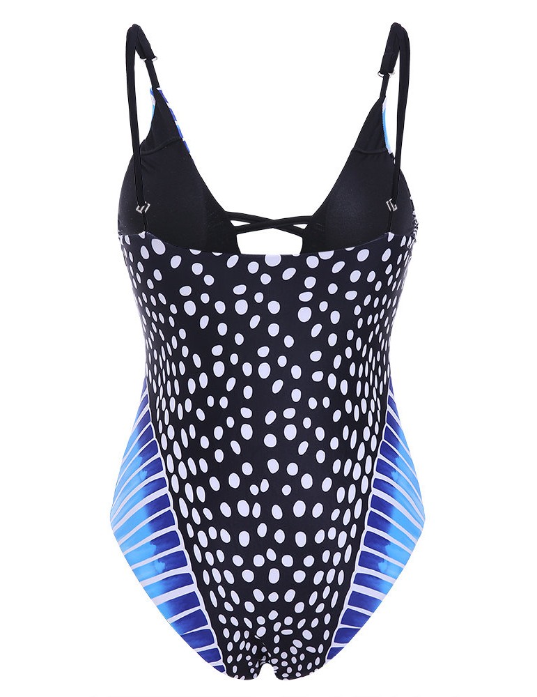 Retro Polka Dot Printed Backless Stretchy Hollow Out One-Pieces Swimwear For Women