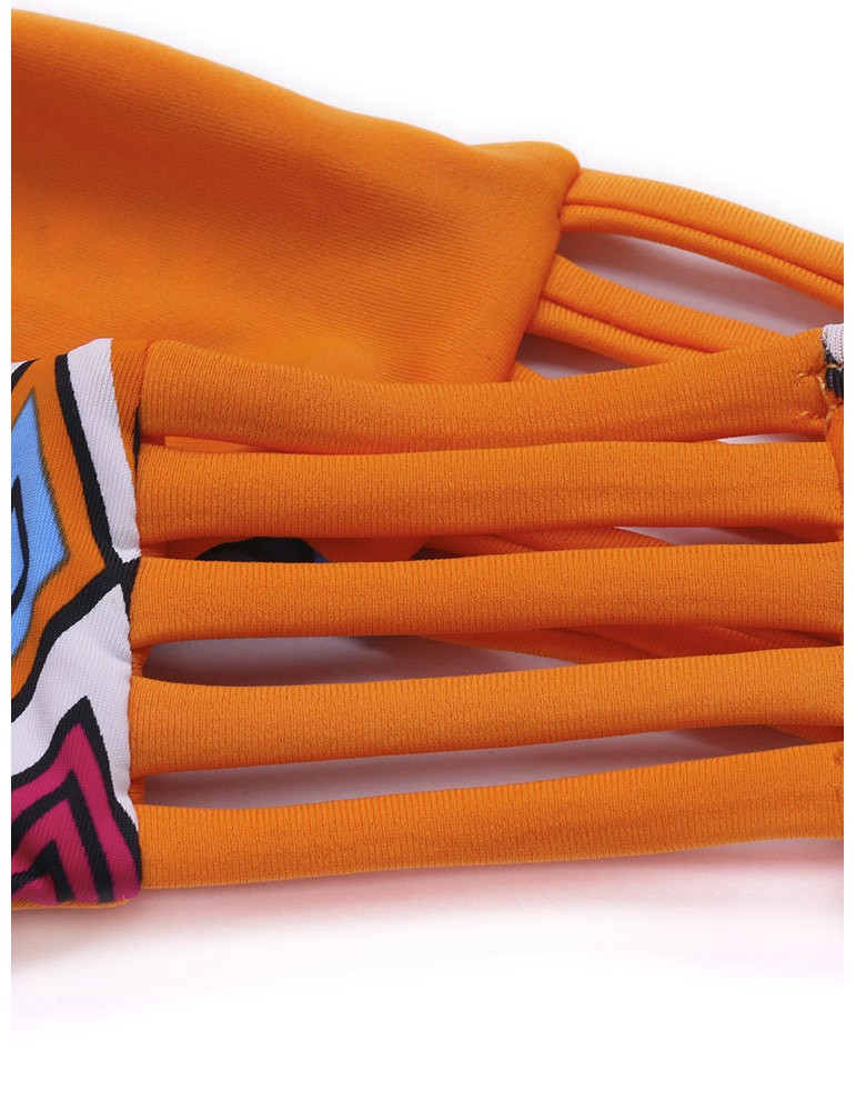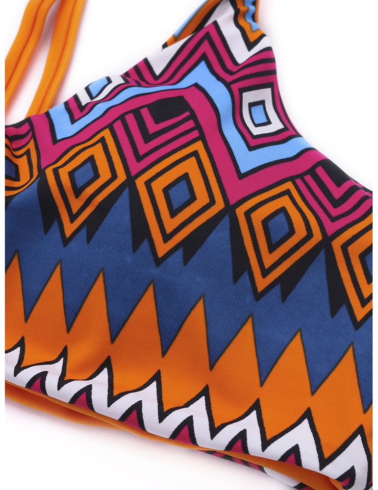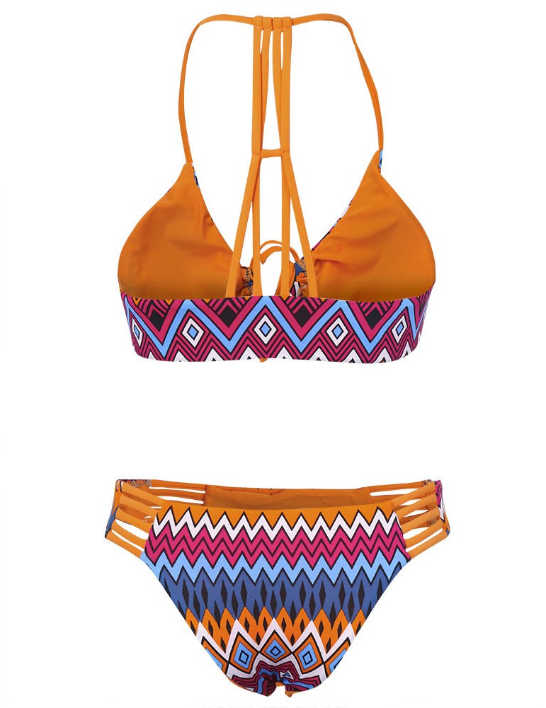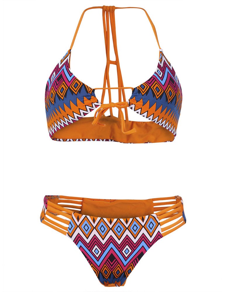 Women Sexy Geometric Printing Halter Bikini Bandage Hollow Out Bikini Sets