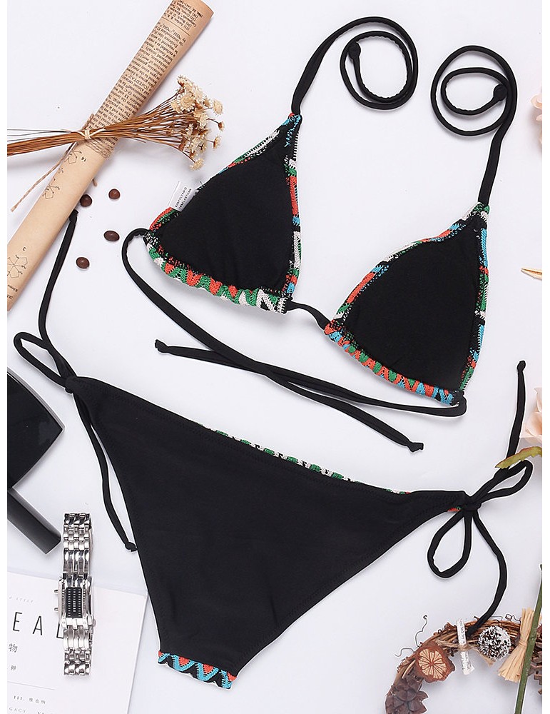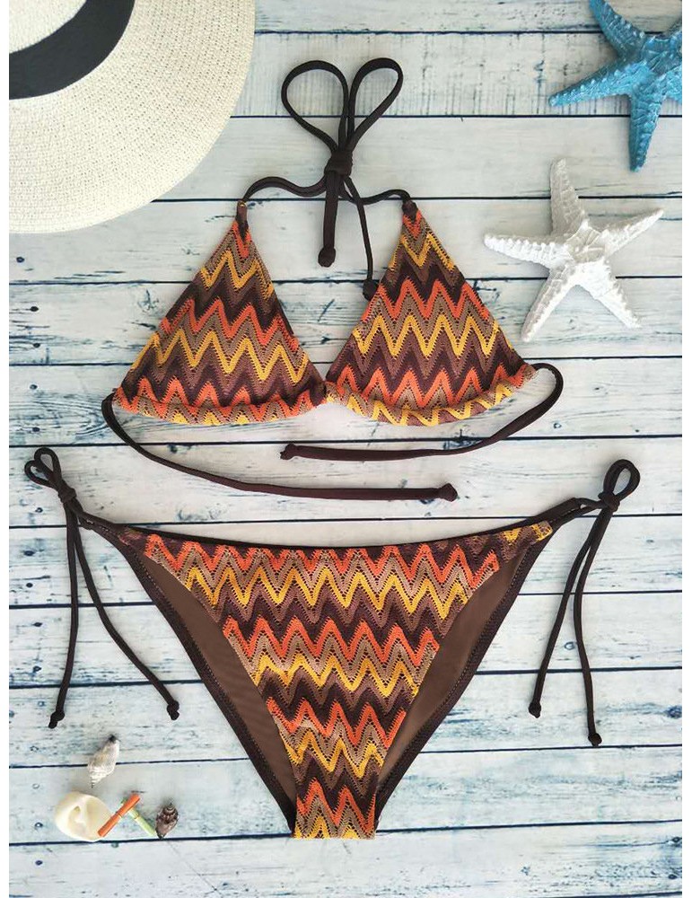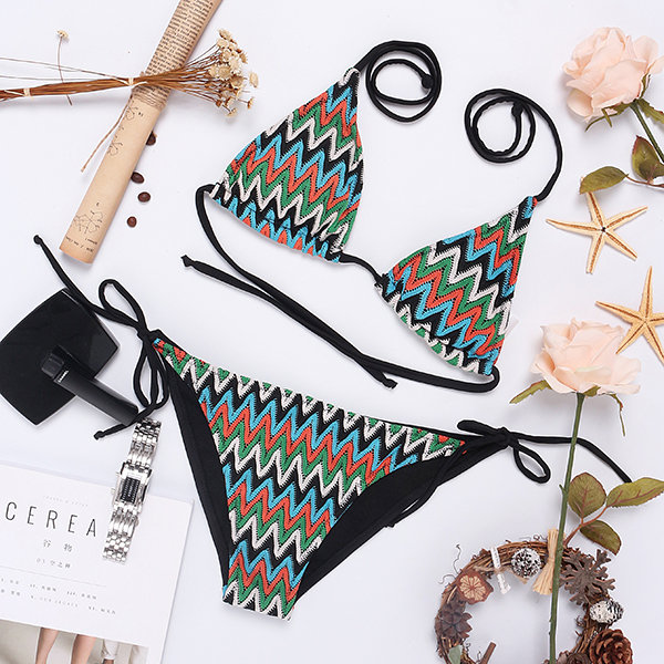 Plus Size Sexy Printed Crochet Backless String Triangle Bikini Swimwear For Women