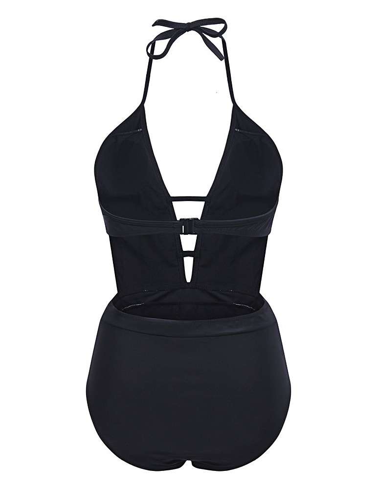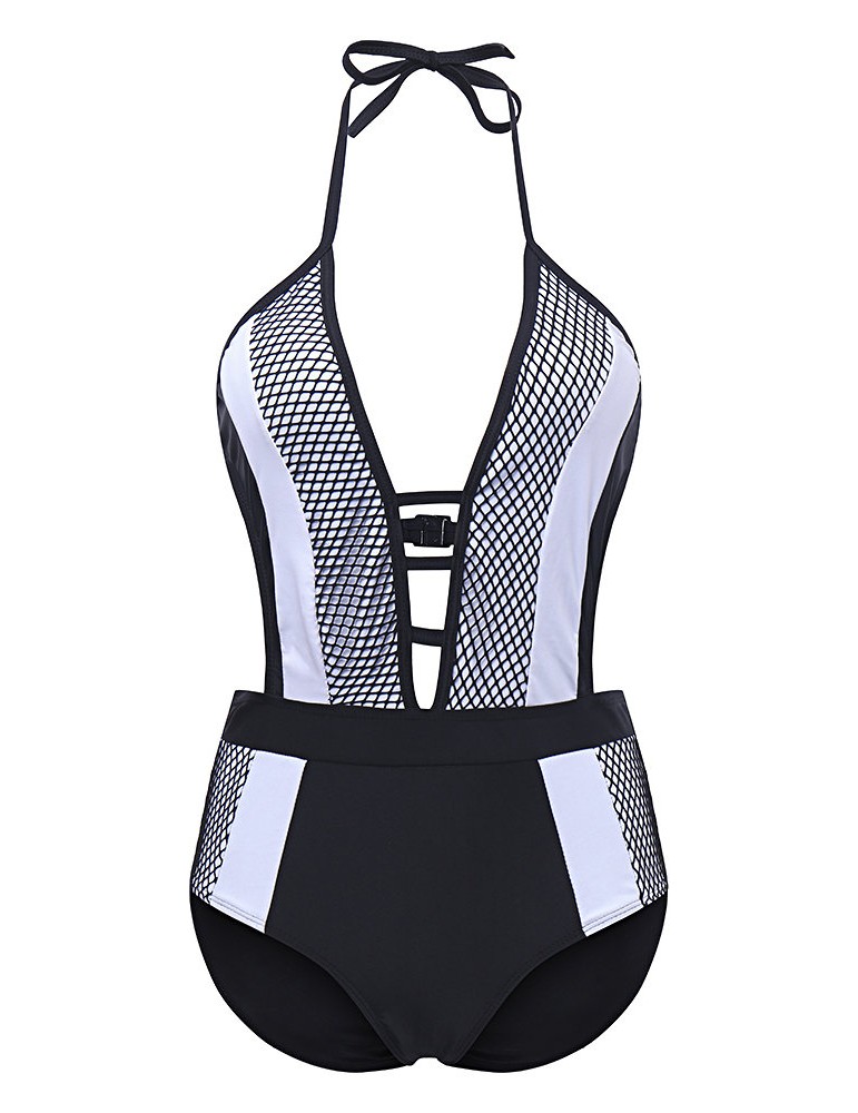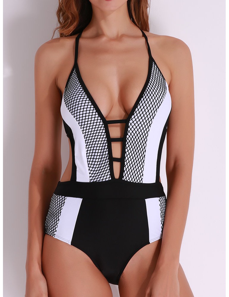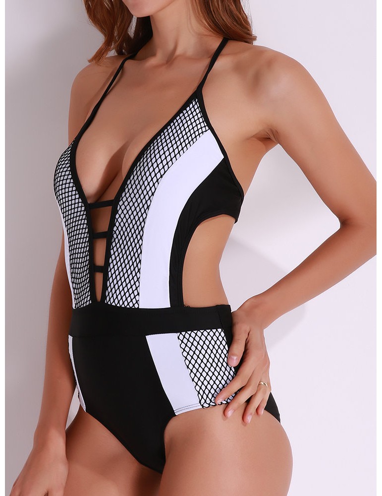 Sexy Patchwork Cut Out Halter Backless Monokini Hollow Bodysuit