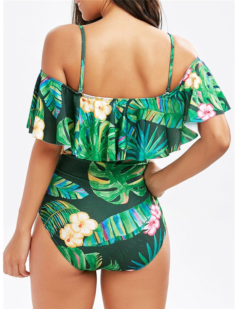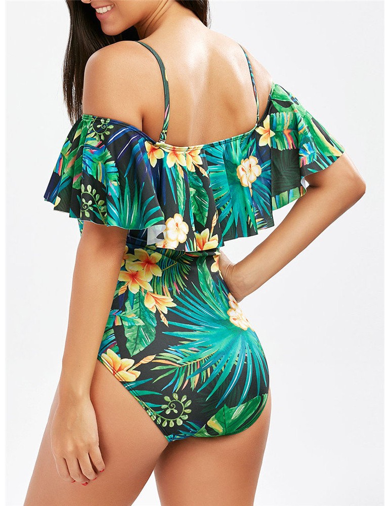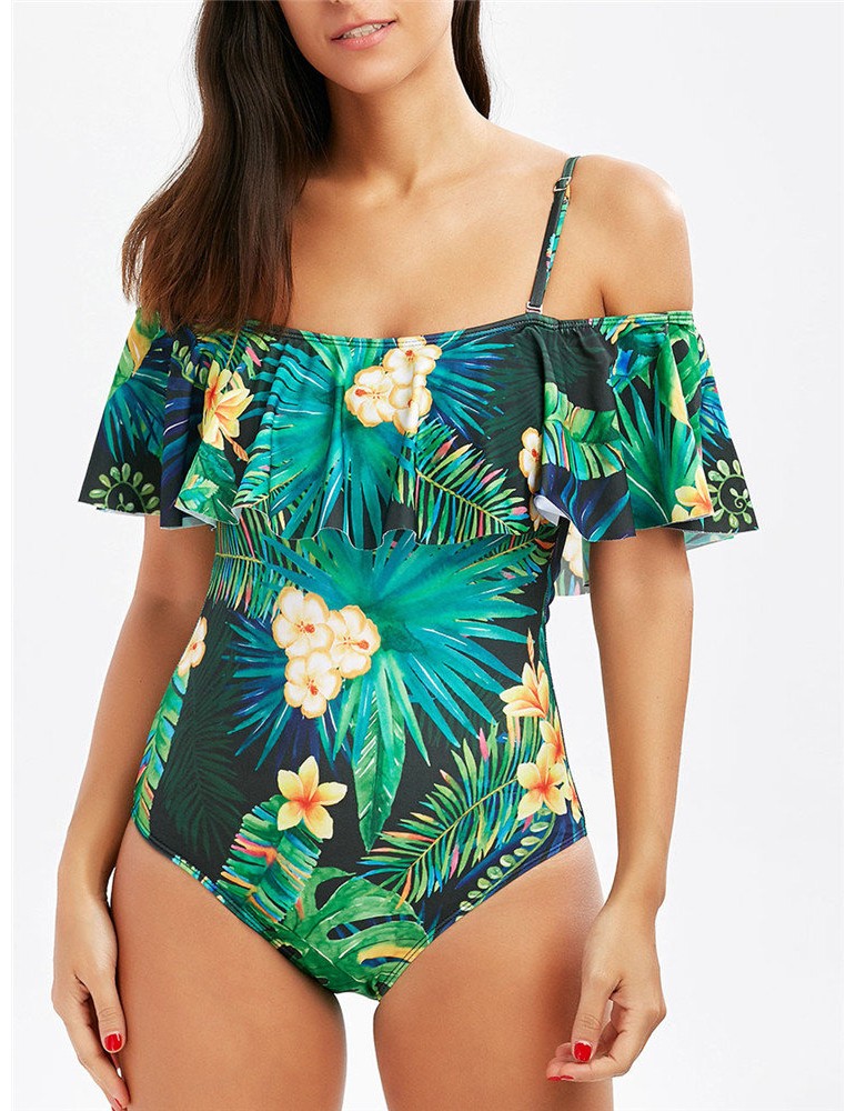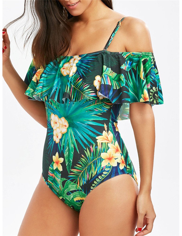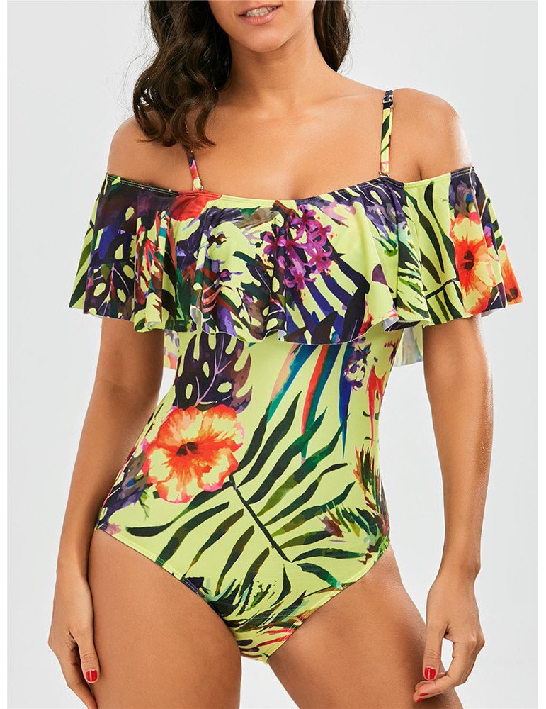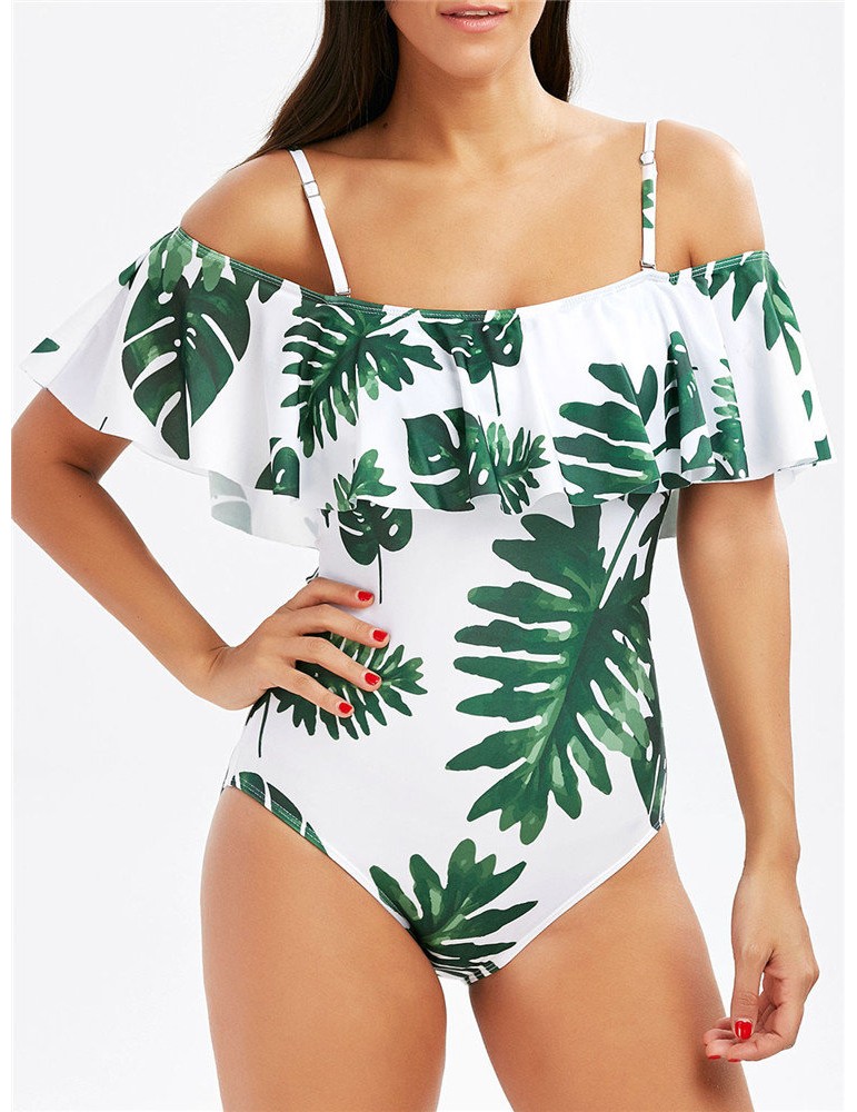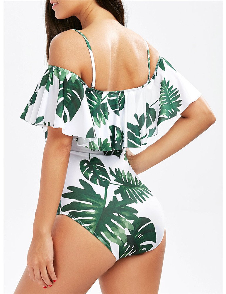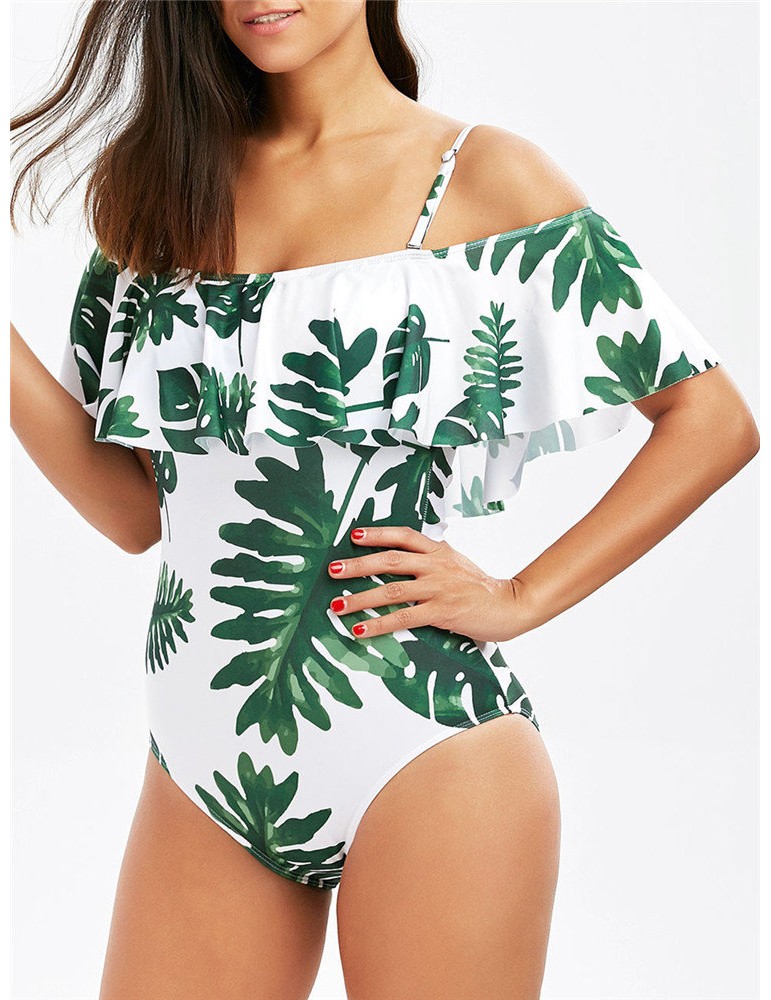 Fresh Flounces Word Shoulder Monokini Swimsuit