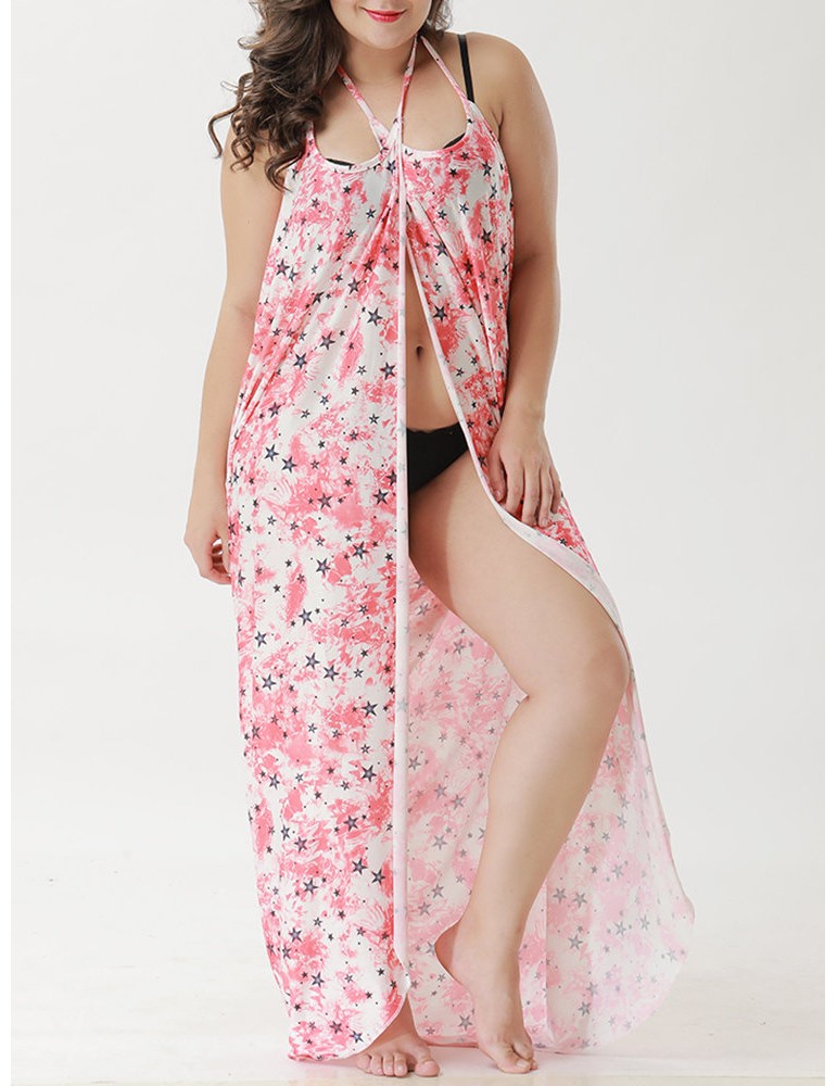 Plus Size Printed Multi-way Wear Shawl Beach Dress Cover-Ups Swimwear