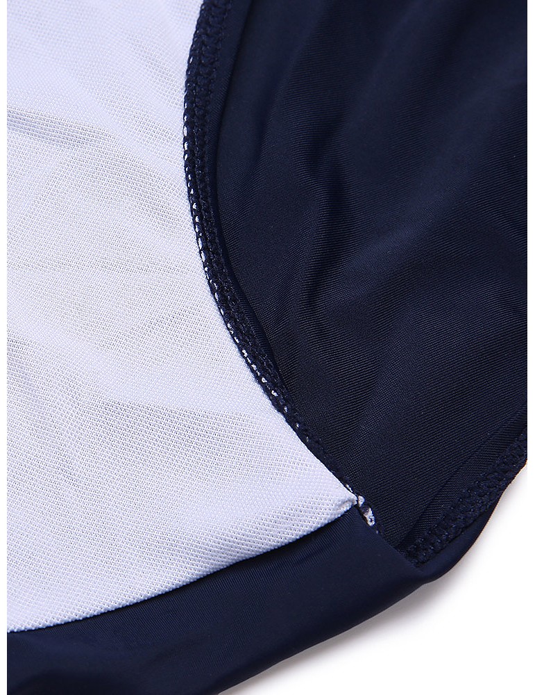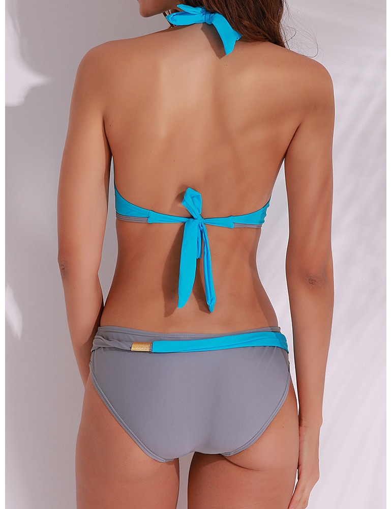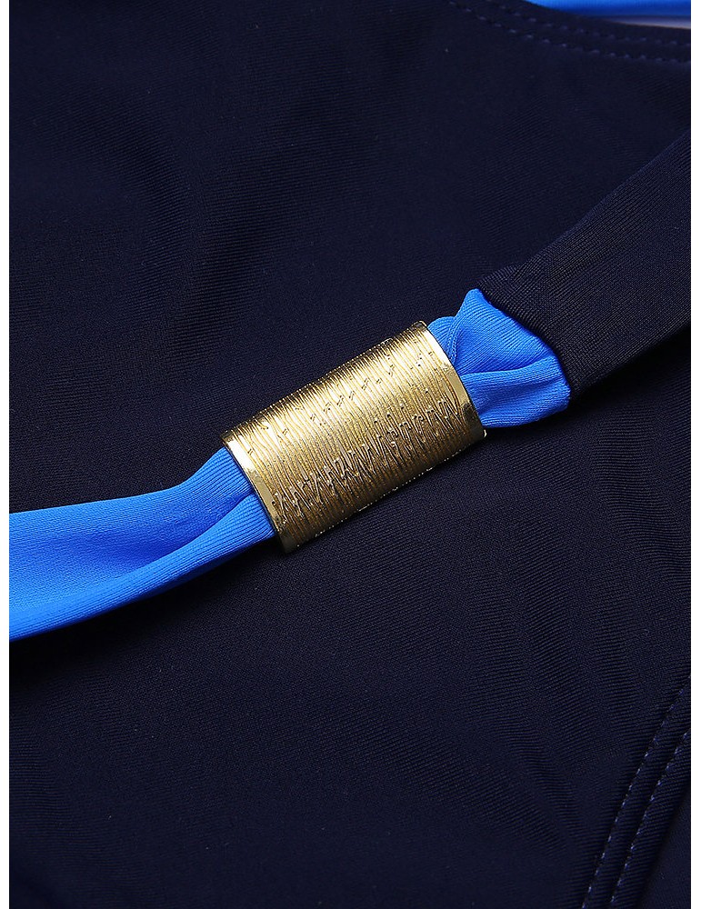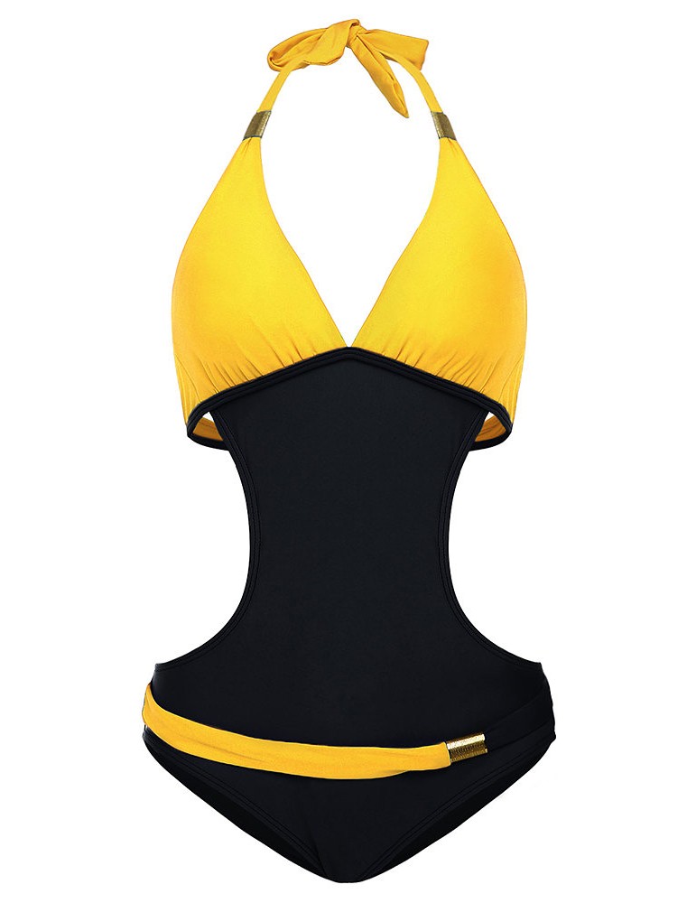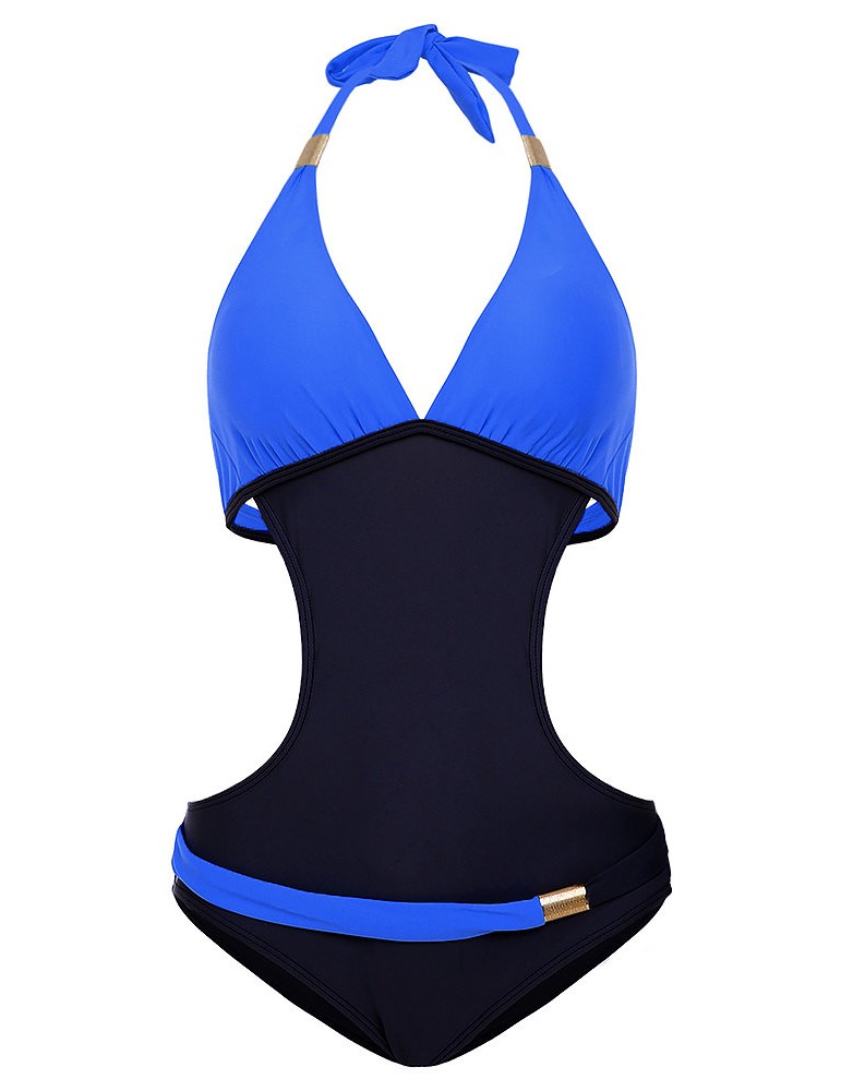 Sexy V-neck Halter Two-tone Patchwork Backless Wire Free Monokini Swimwear