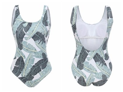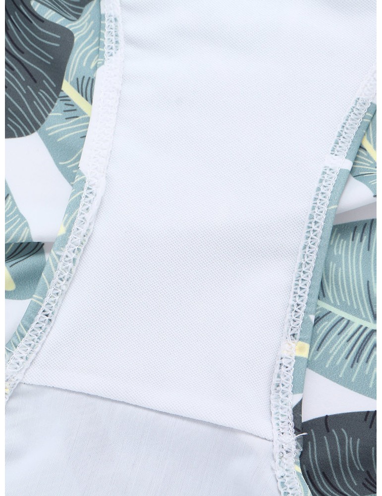 Plus Size Leaves Printed U Neck Vest Scoop Back Sexy Monokini Swimsuits For Women