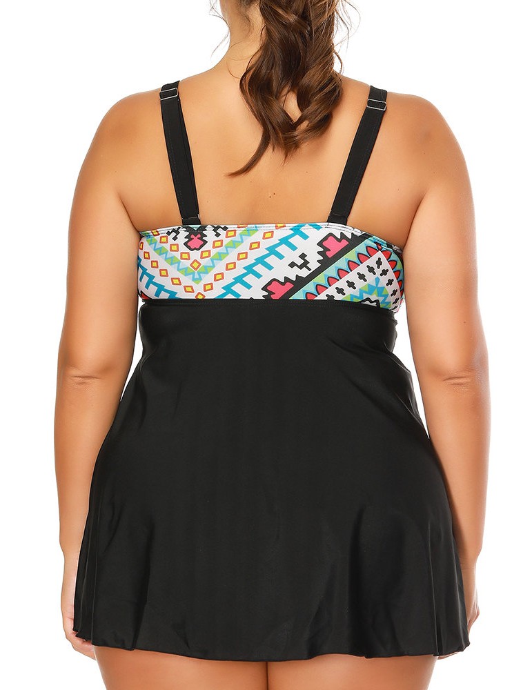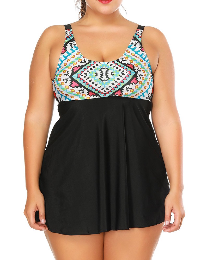 Geometric Printed Two Piece Sexy Swimdress For Women