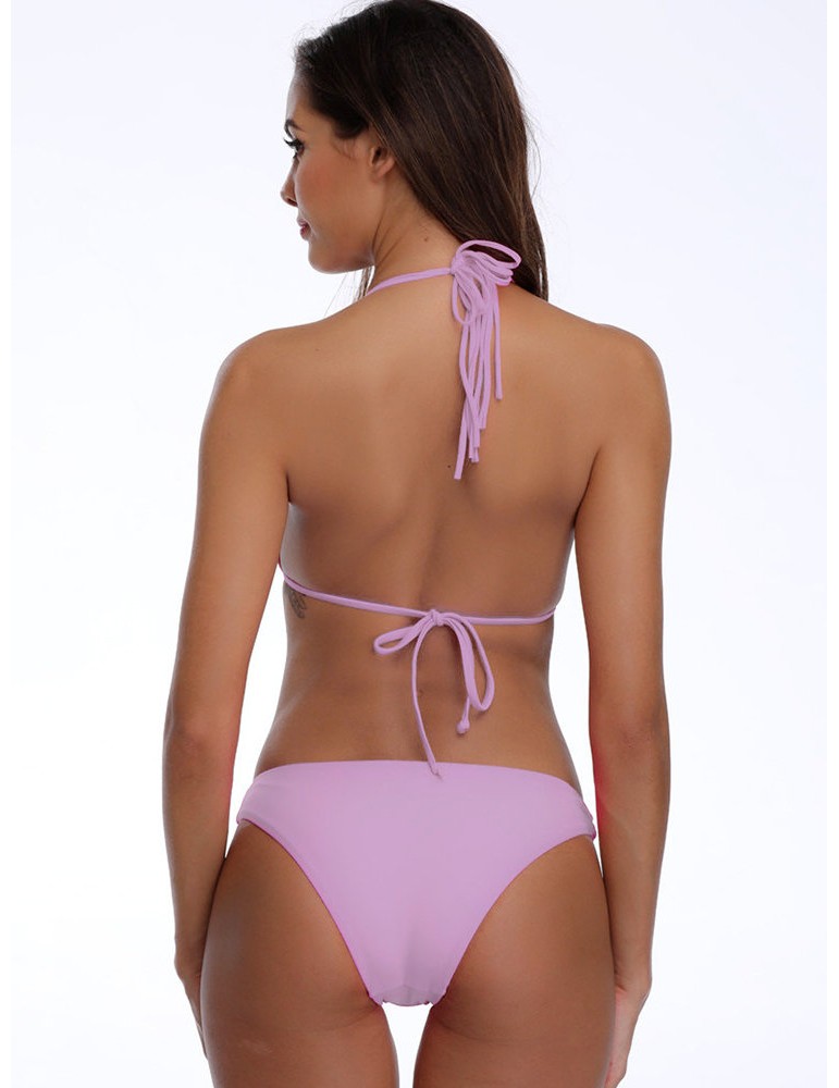 Halter Drawstring Triangle Ruffled Backless Sexy Bikinis Swimwear For Women Beach