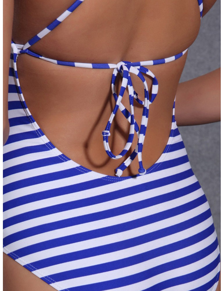 Sexy Striped Backless Strings Criss-cross One Piece Swimwear