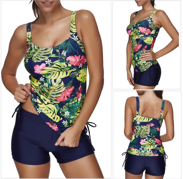 Breathable Printed Stretchy Soft Boyshorts Tankinis For Women