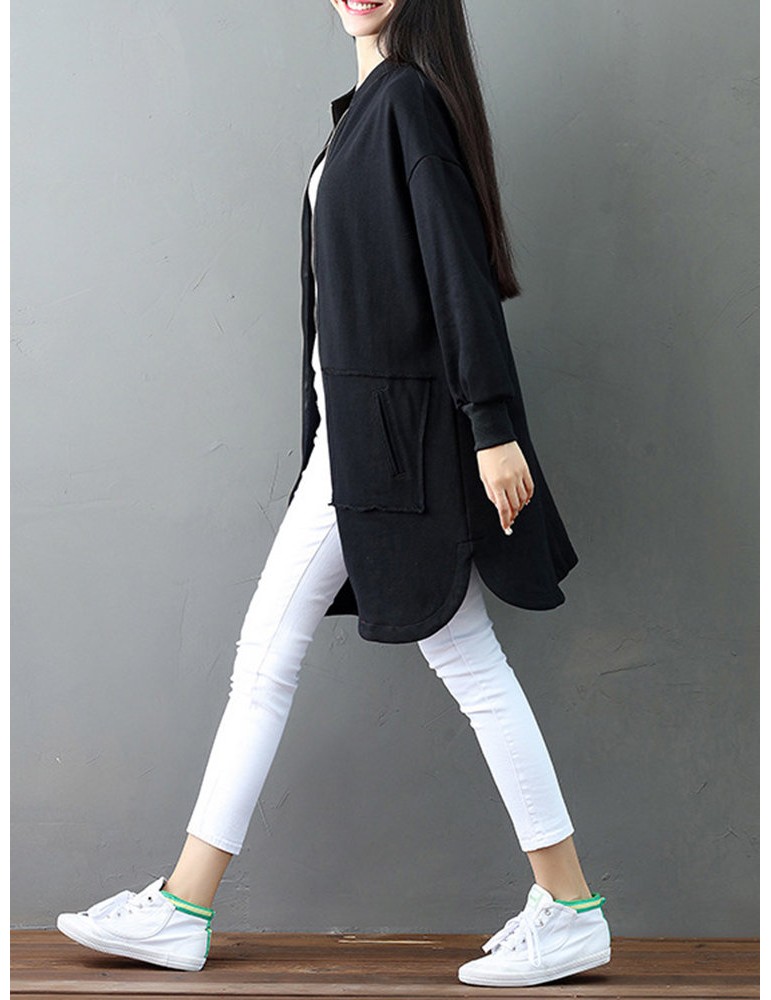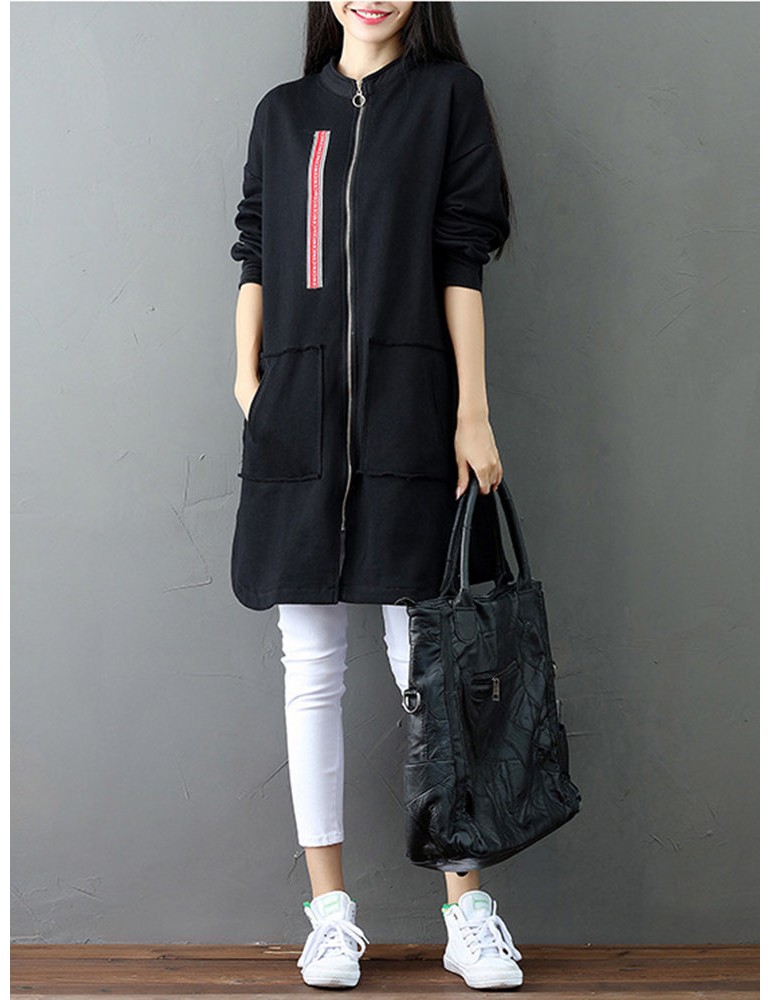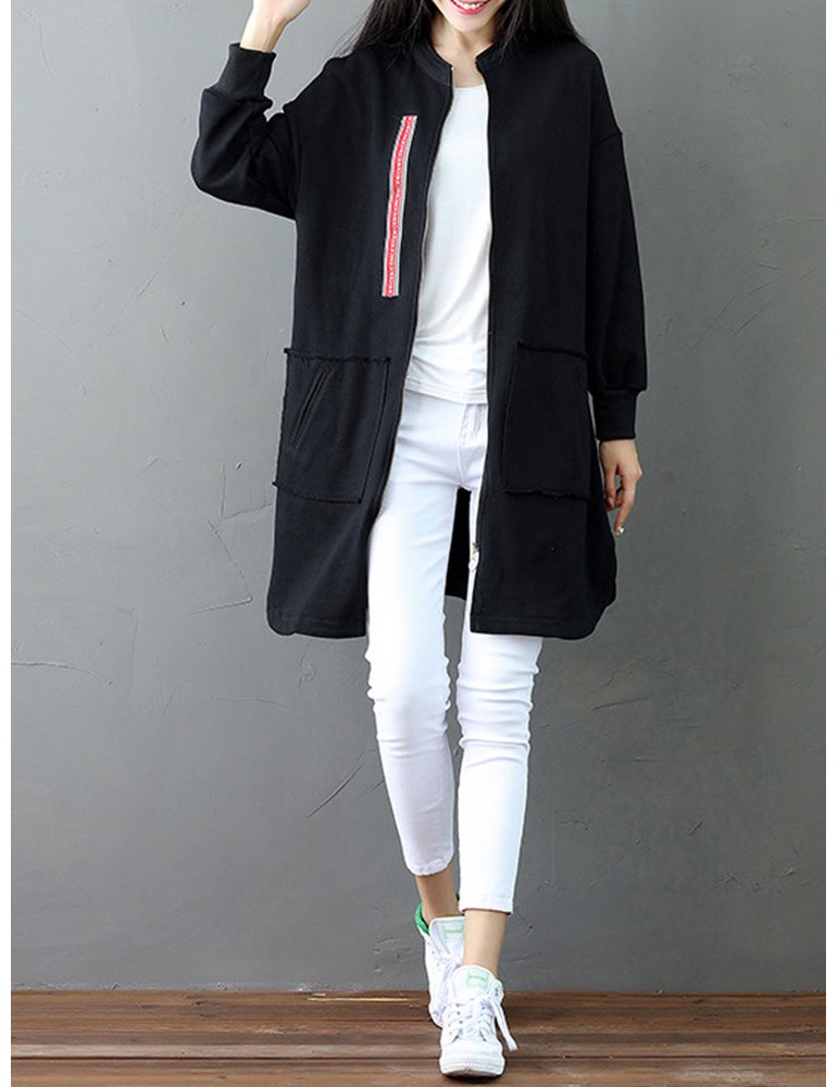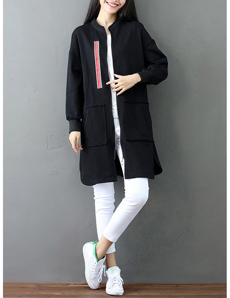 Casual Letter Printed Splited Irregular Stand Collar Women Coats