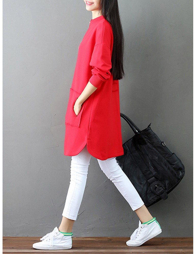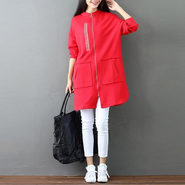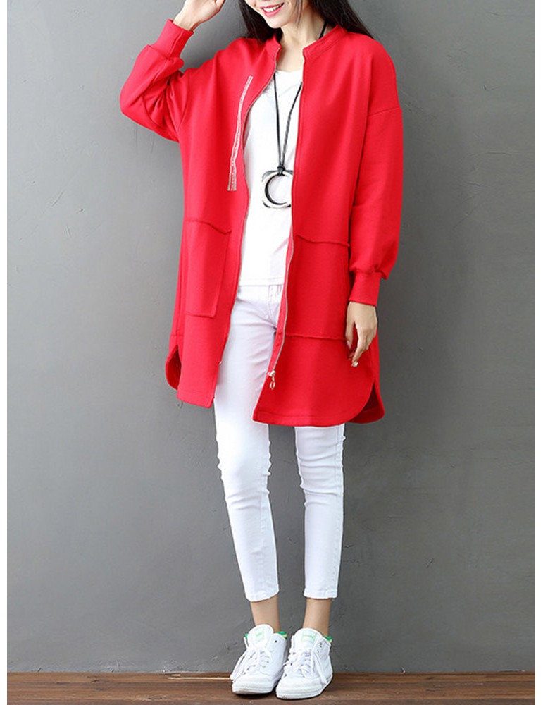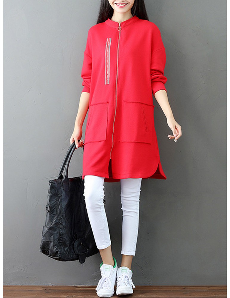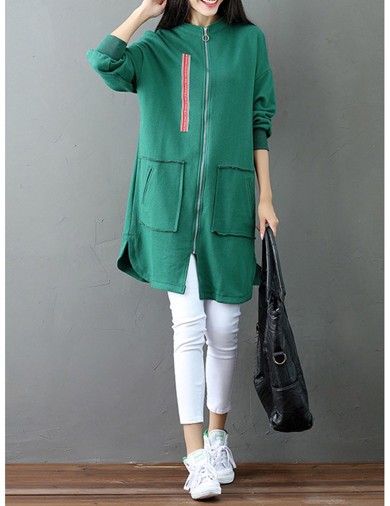 Casual Letter Printed Splited Irregular Stand Collar Women Coats
