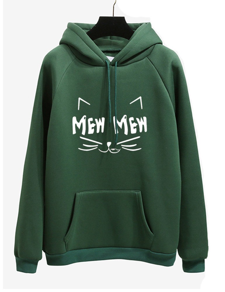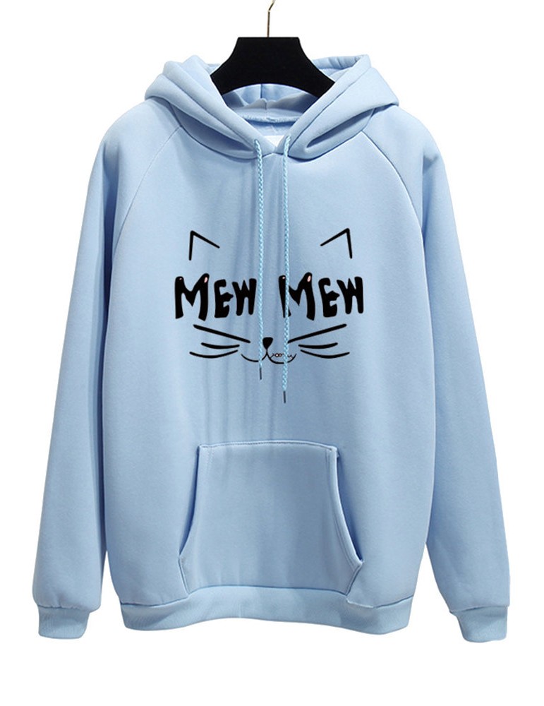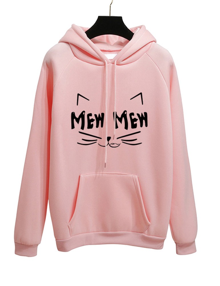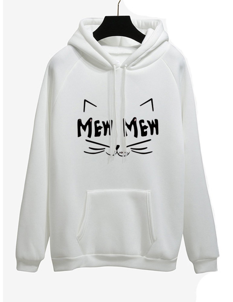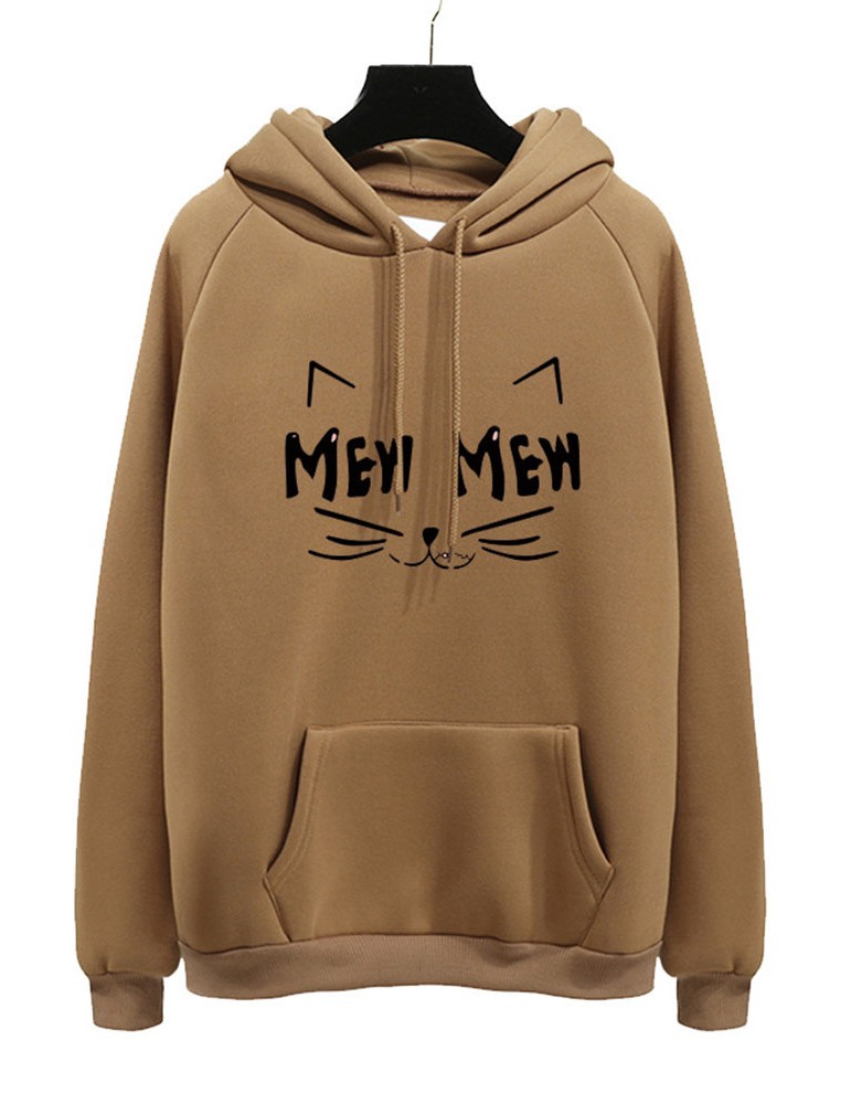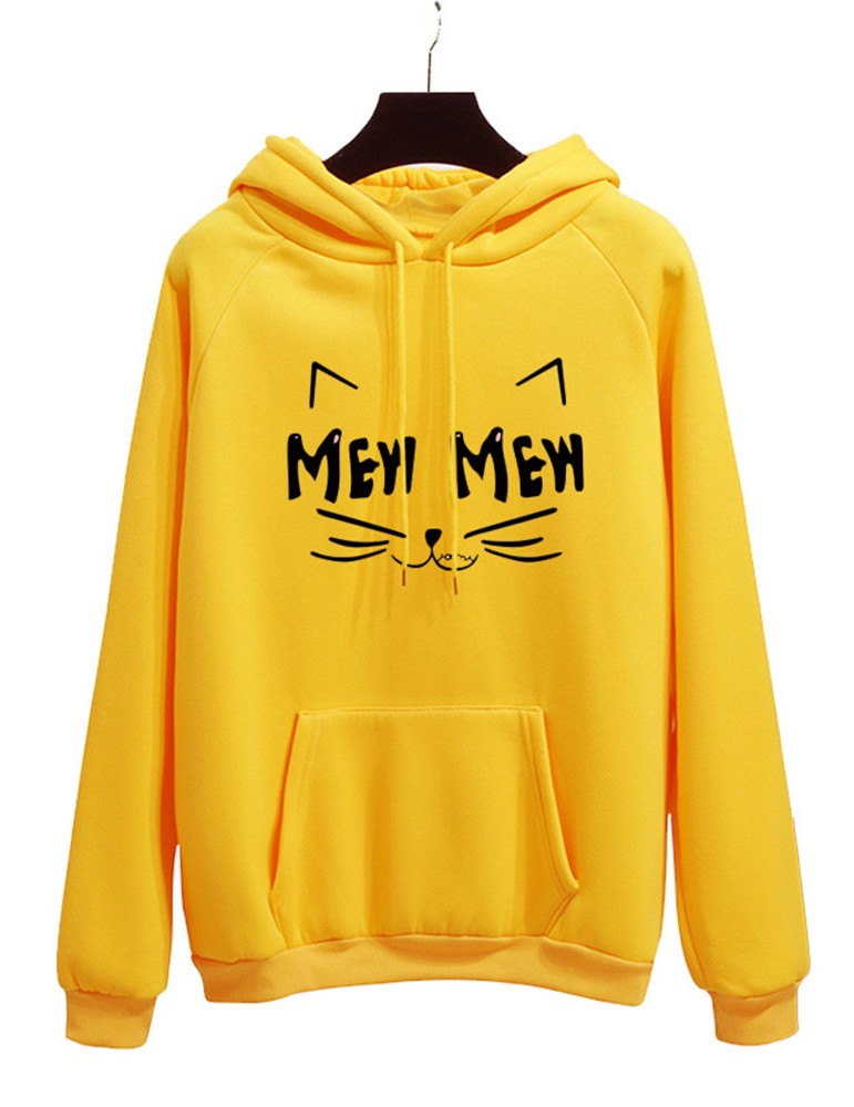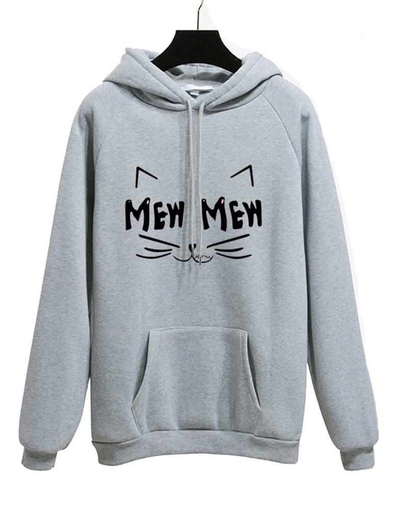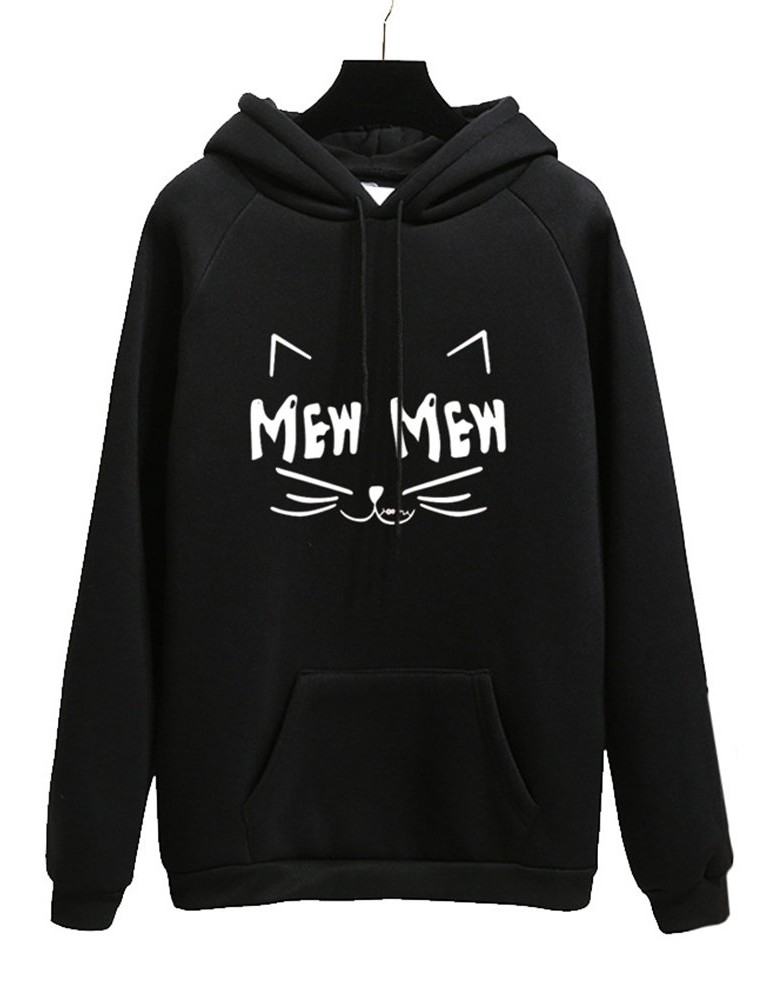 Casual Hooded Cat Printed Long Sleeve Sweatshirts