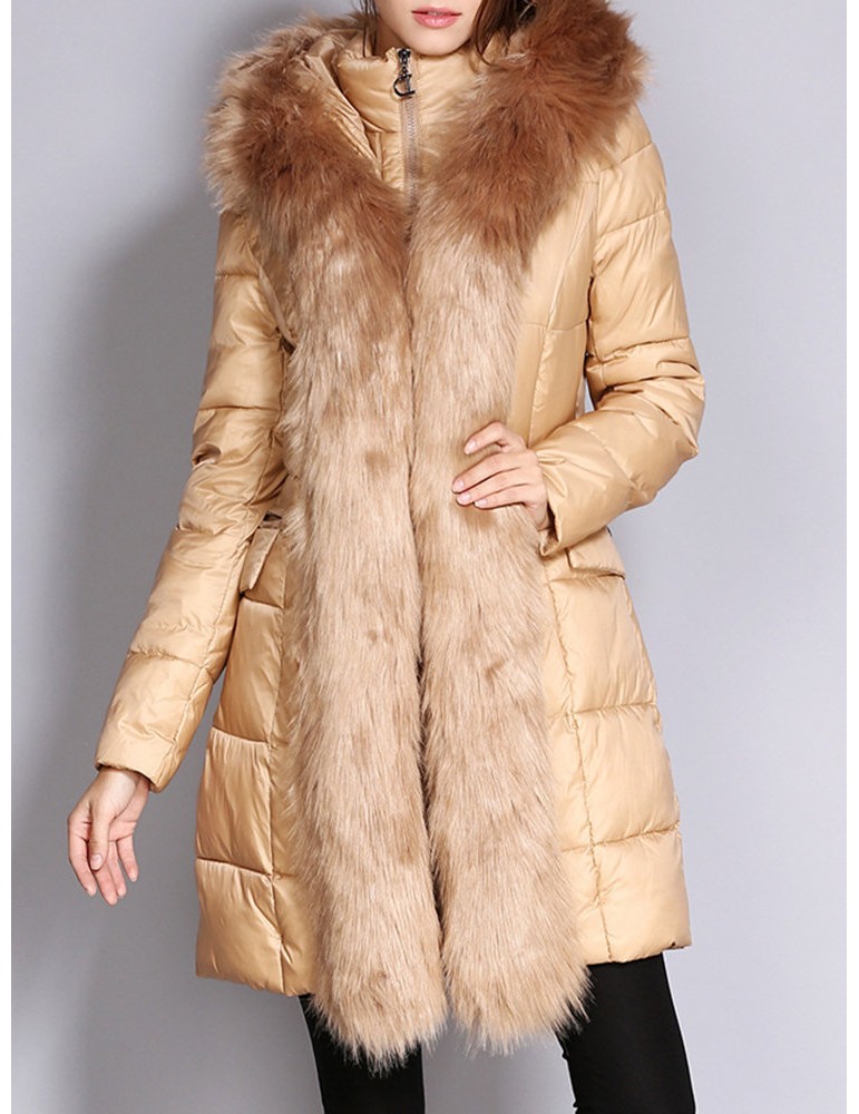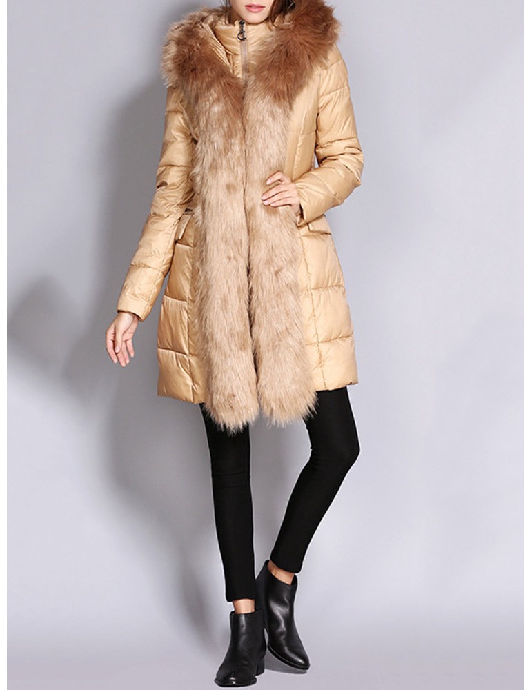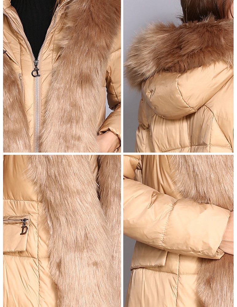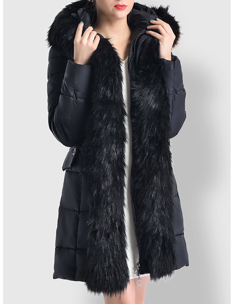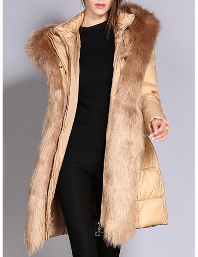Faux Fur Hooded Zipper Up Down Coat