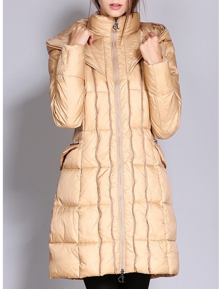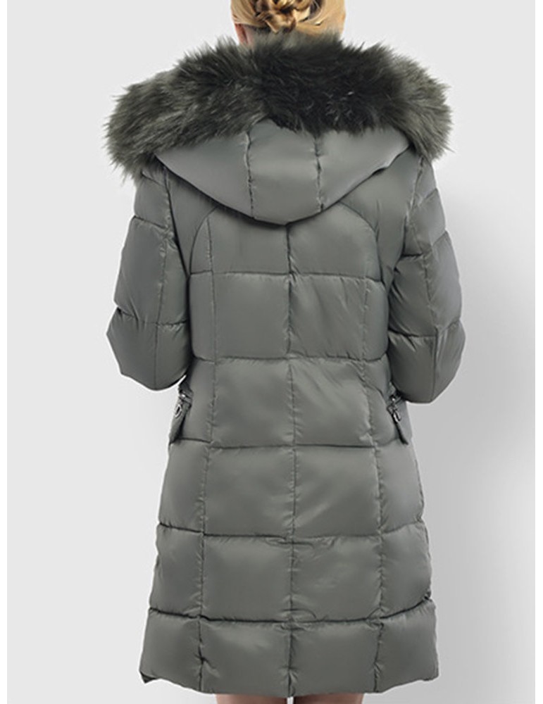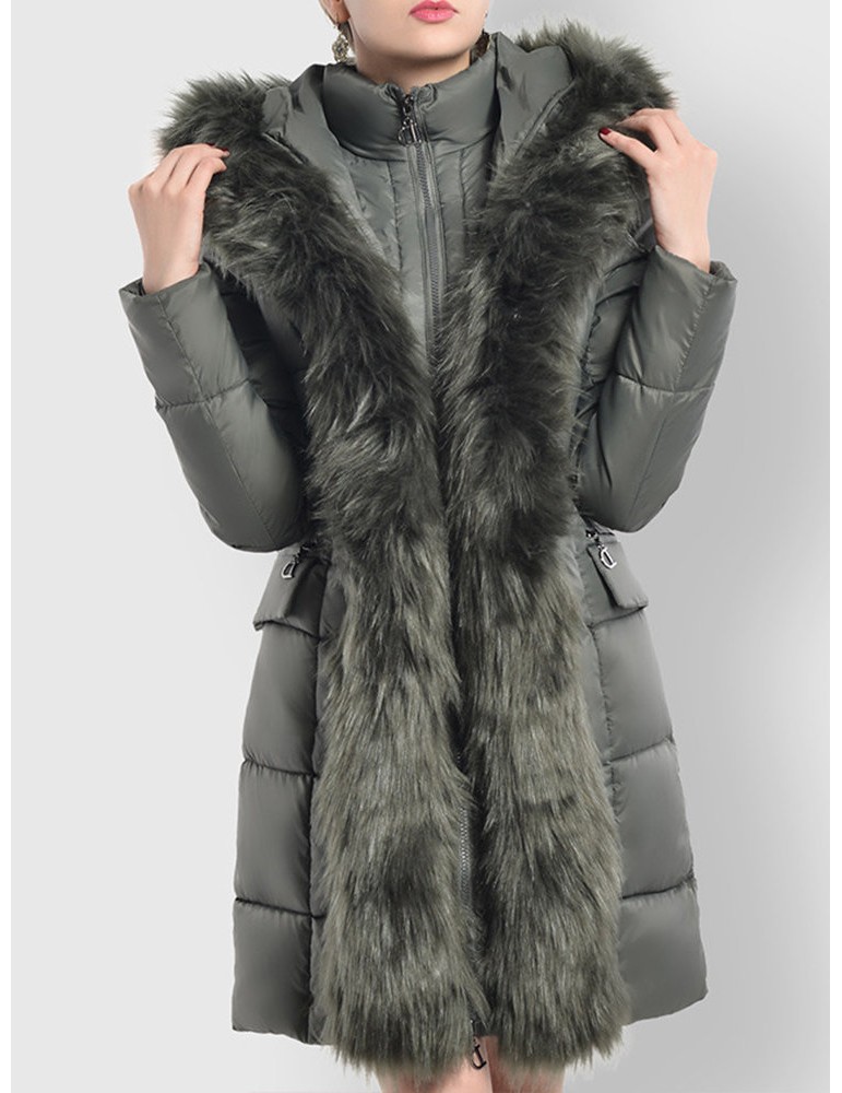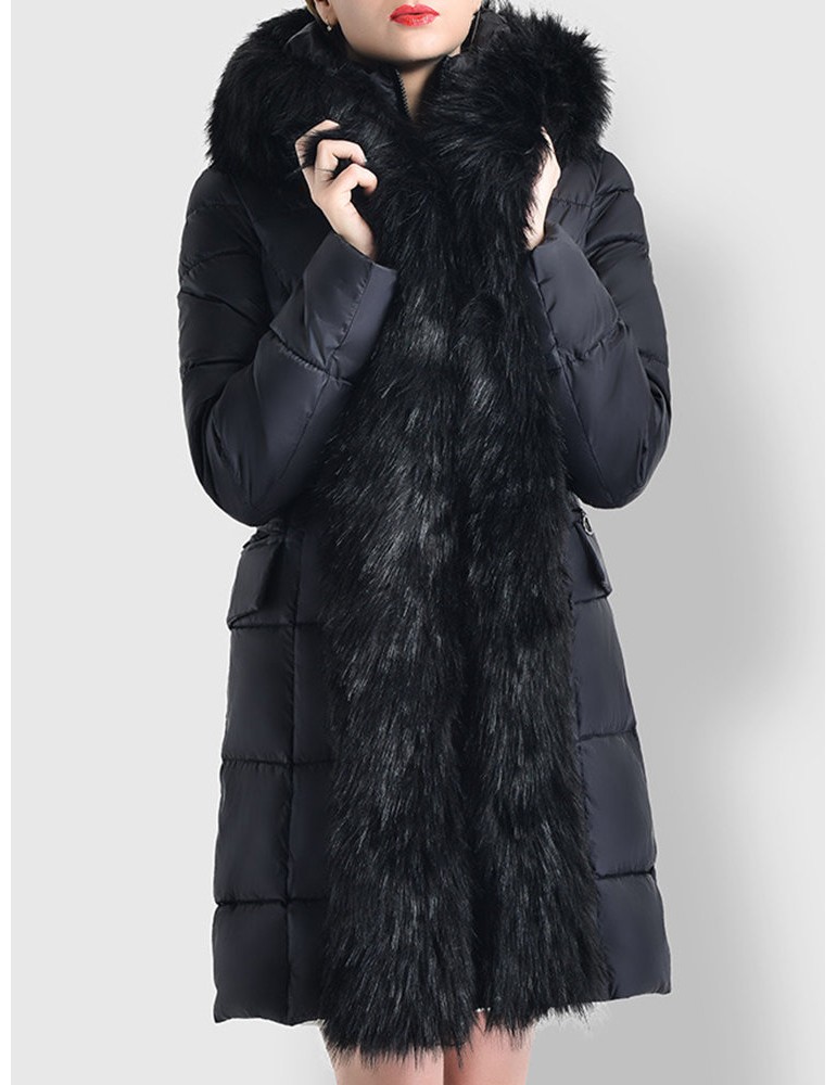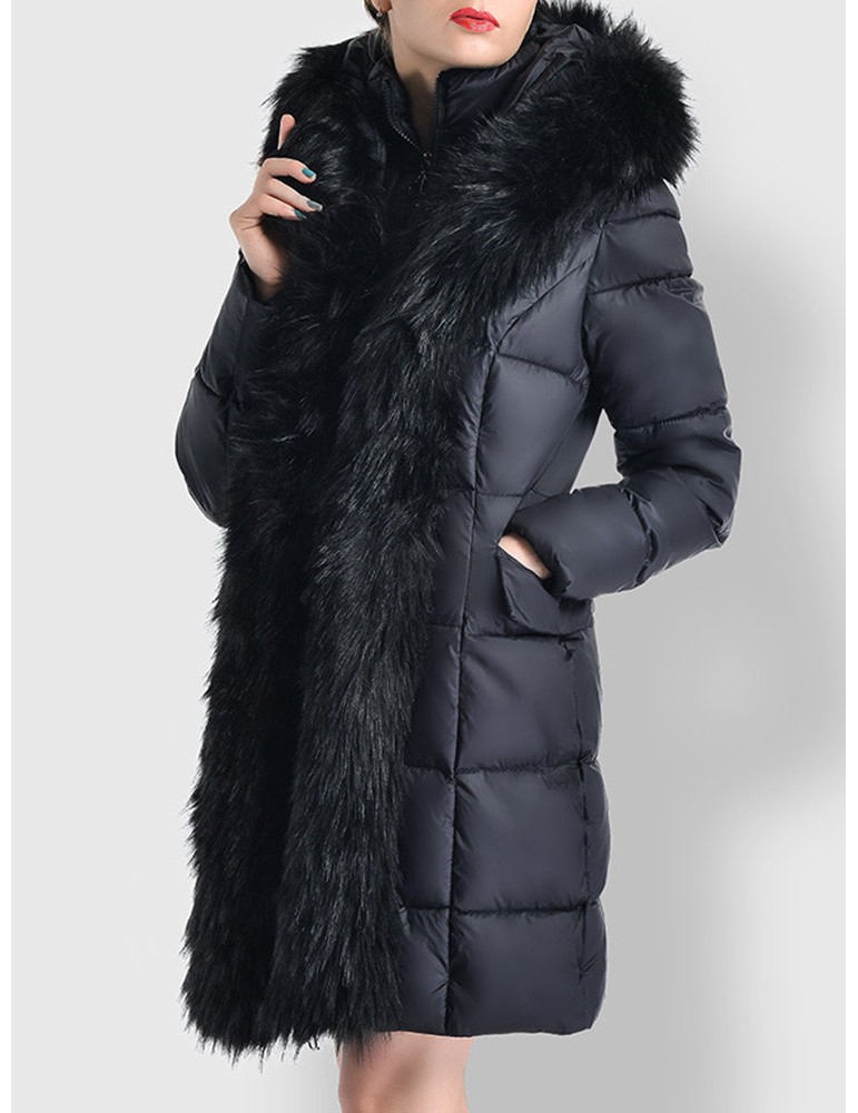Faux Fur Hooded Zipper Up Down Coat