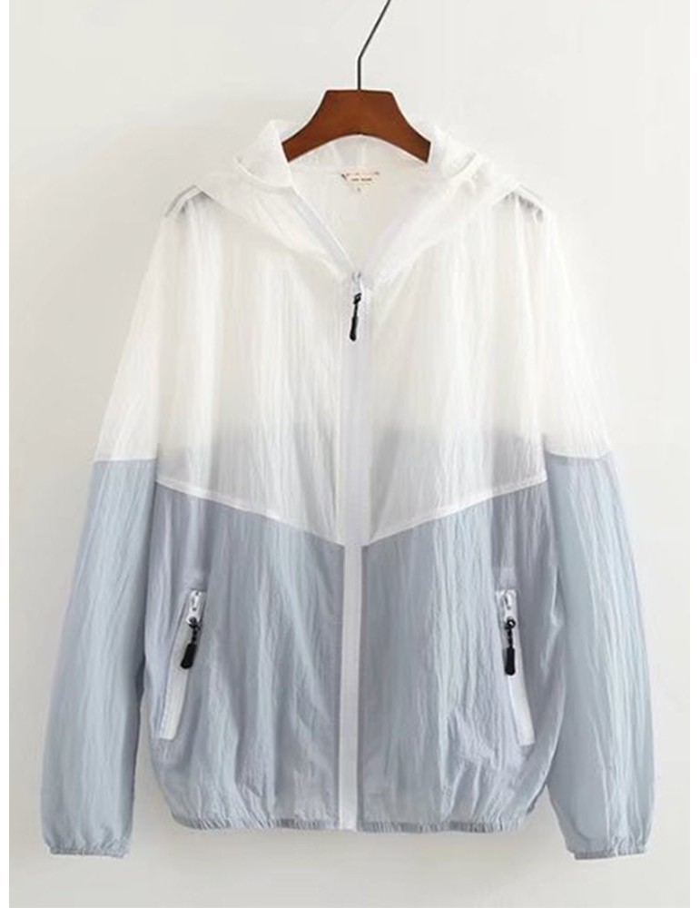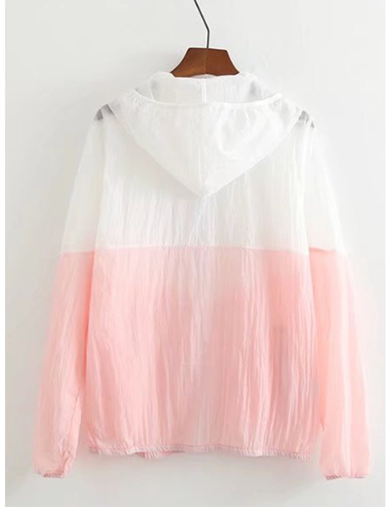 Casual Contrast Color Hooded Long Sleeve Coats For Women