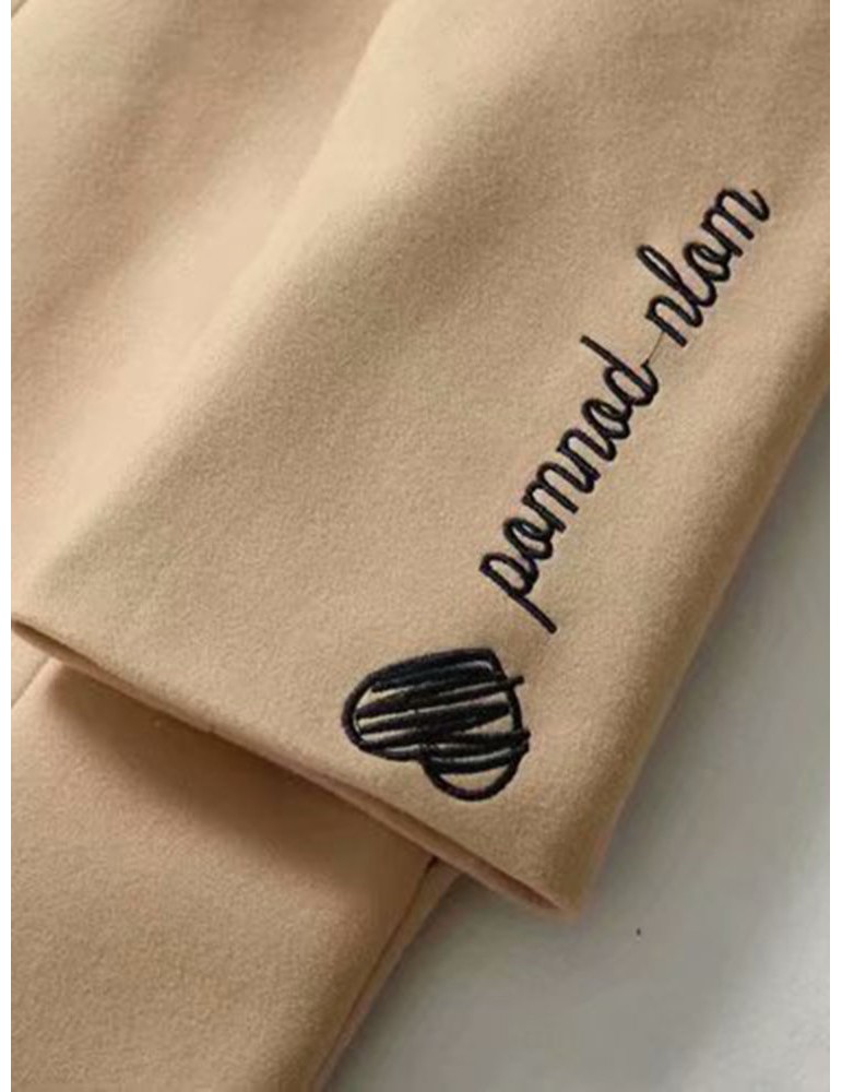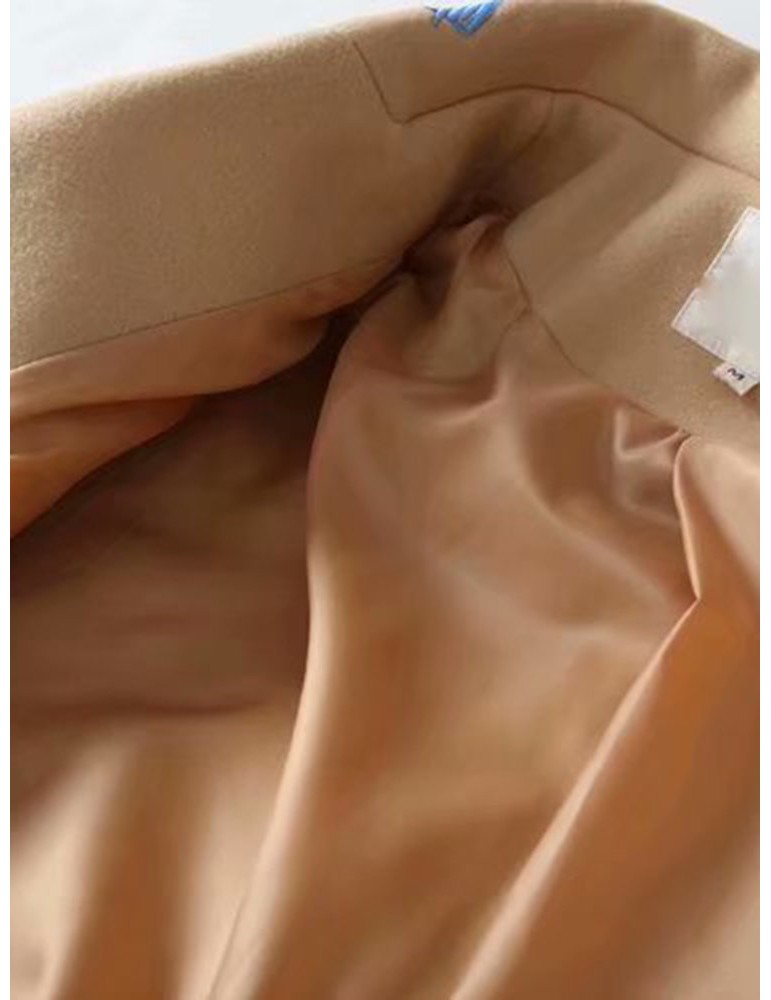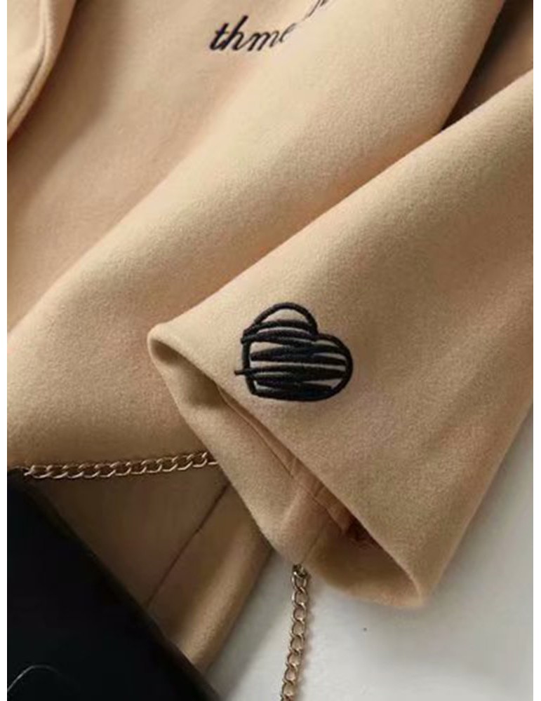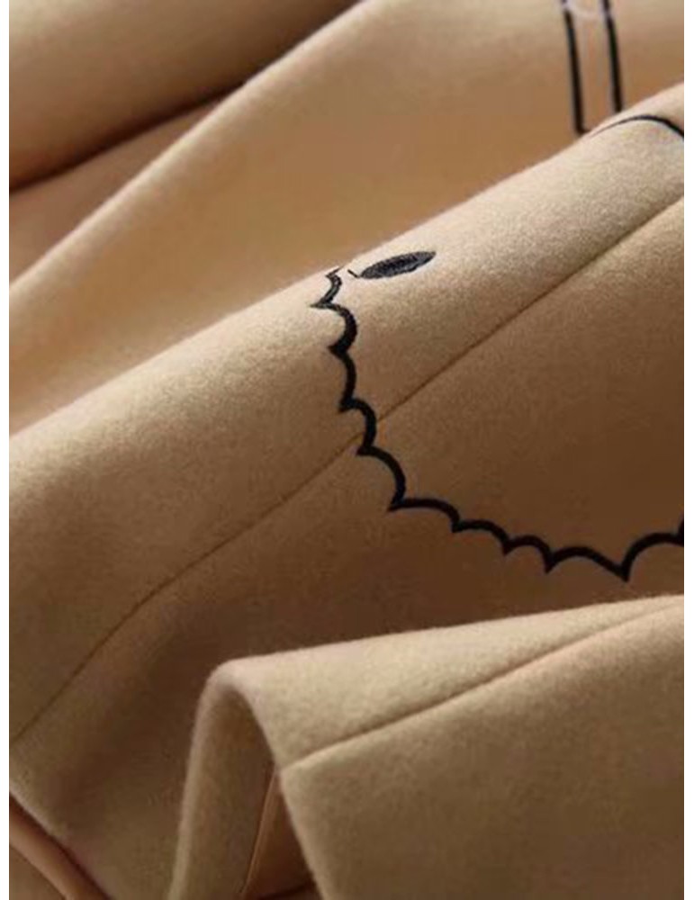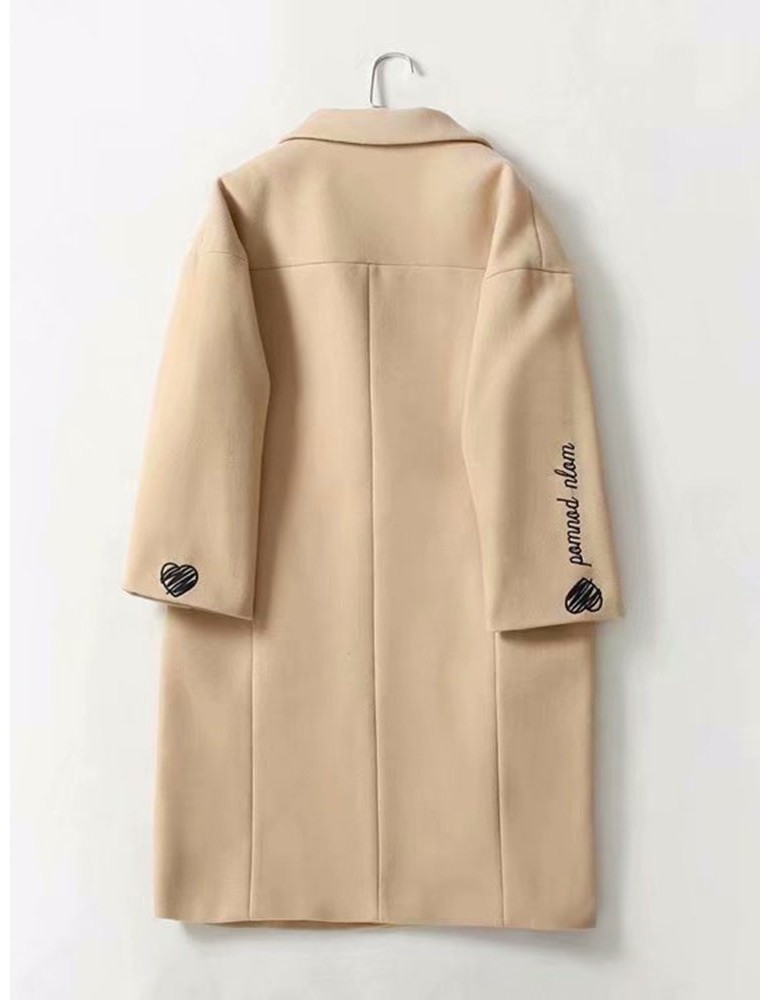 Cartoon Letter Embroidery Lapel Long Sleeve Women Coat