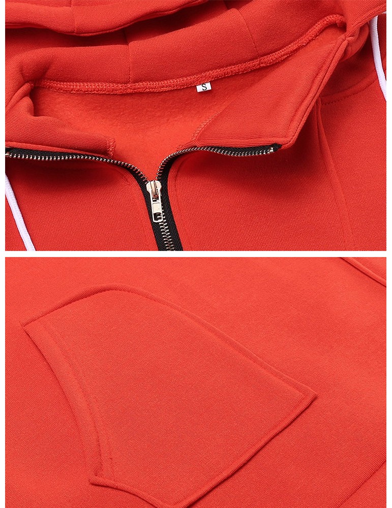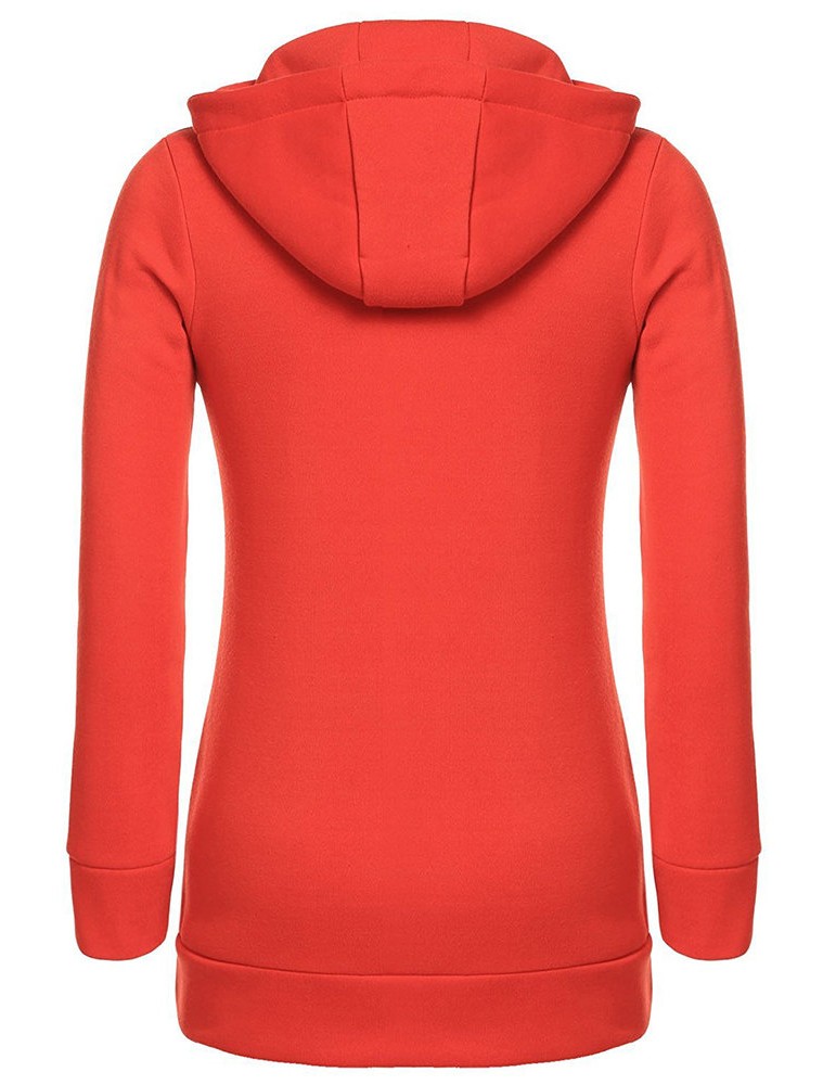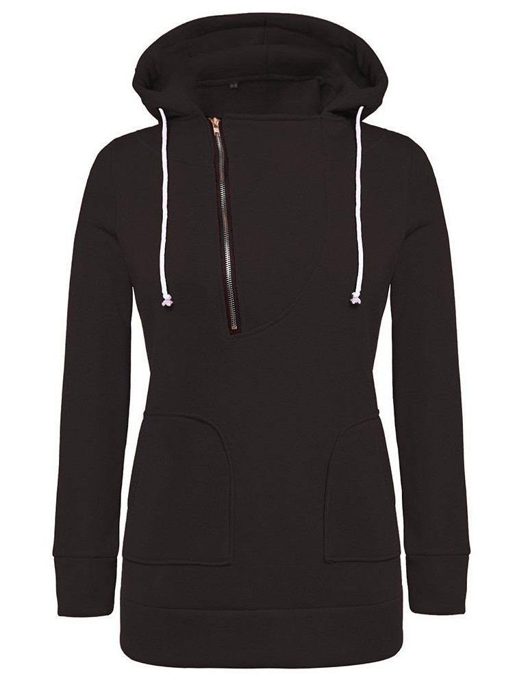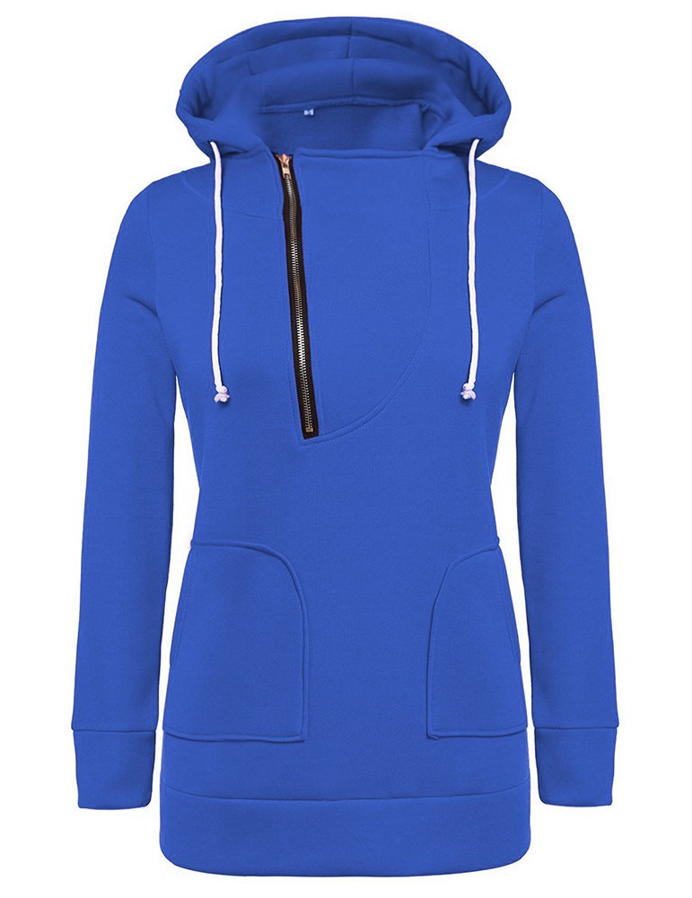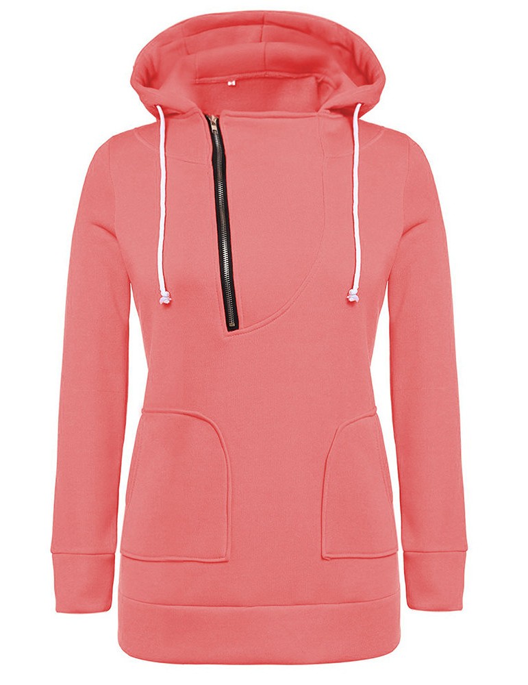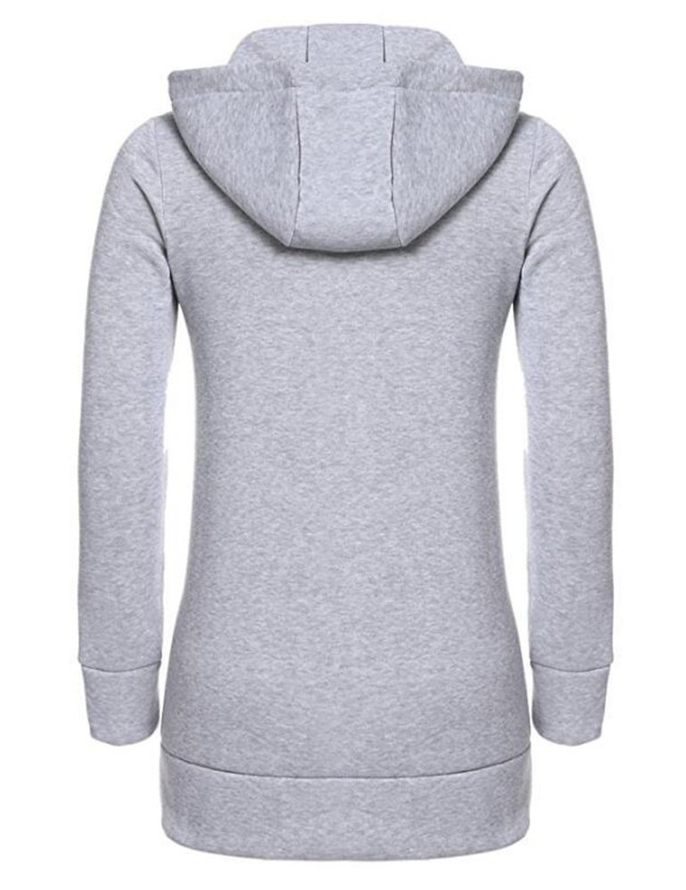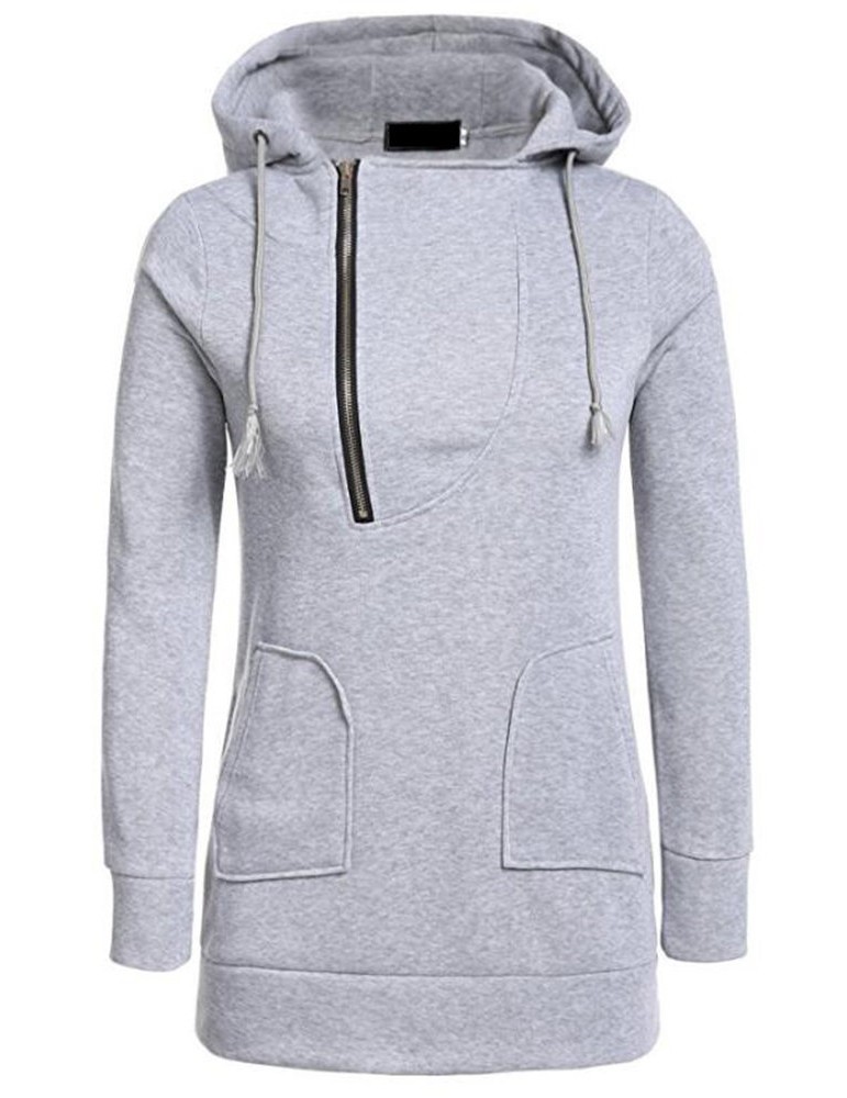 Casual Pure Color Hooded Zipper Long Sleeve Sweatshirts For Women