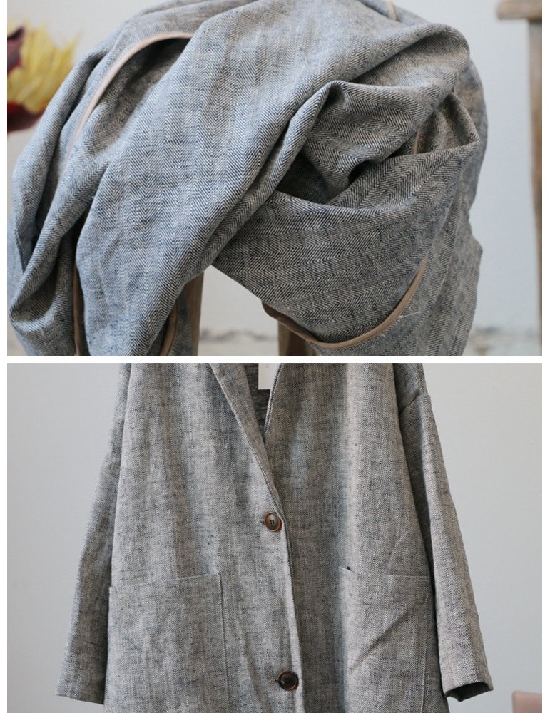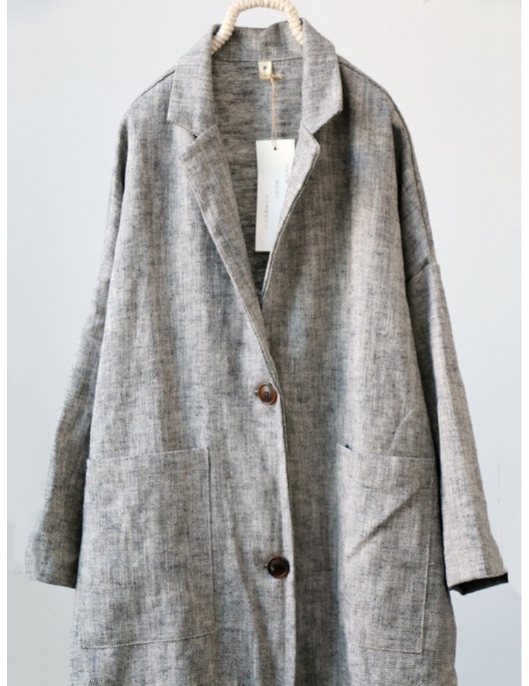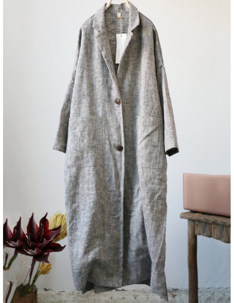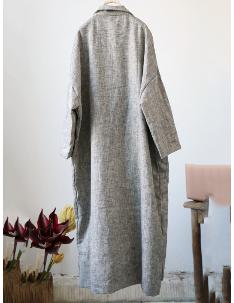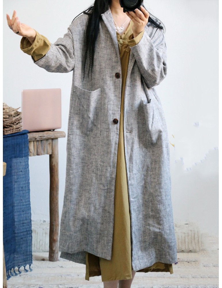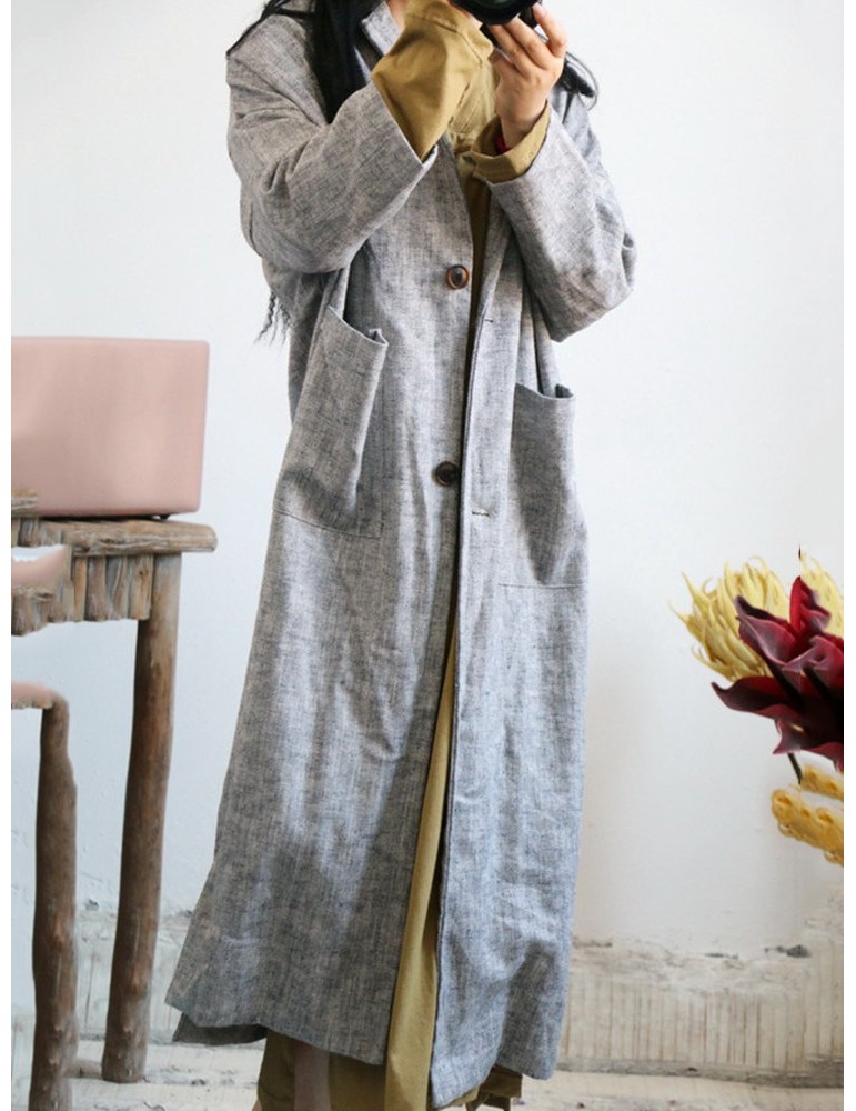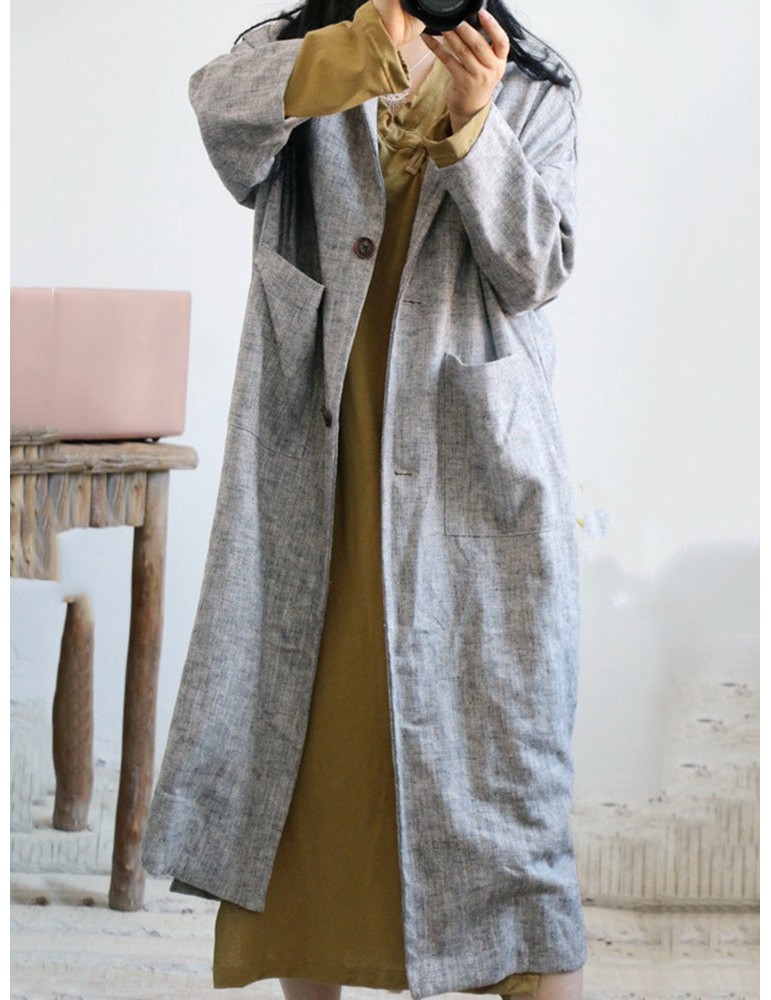 Vintage Pockets Solid Color Cotton Linen Coat