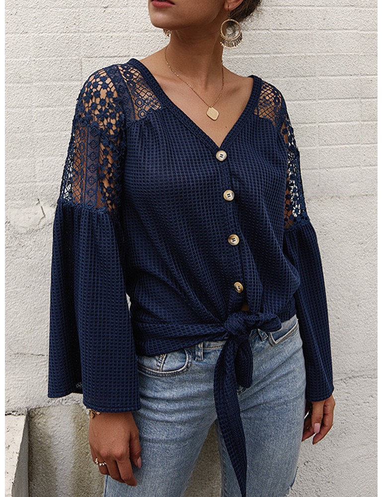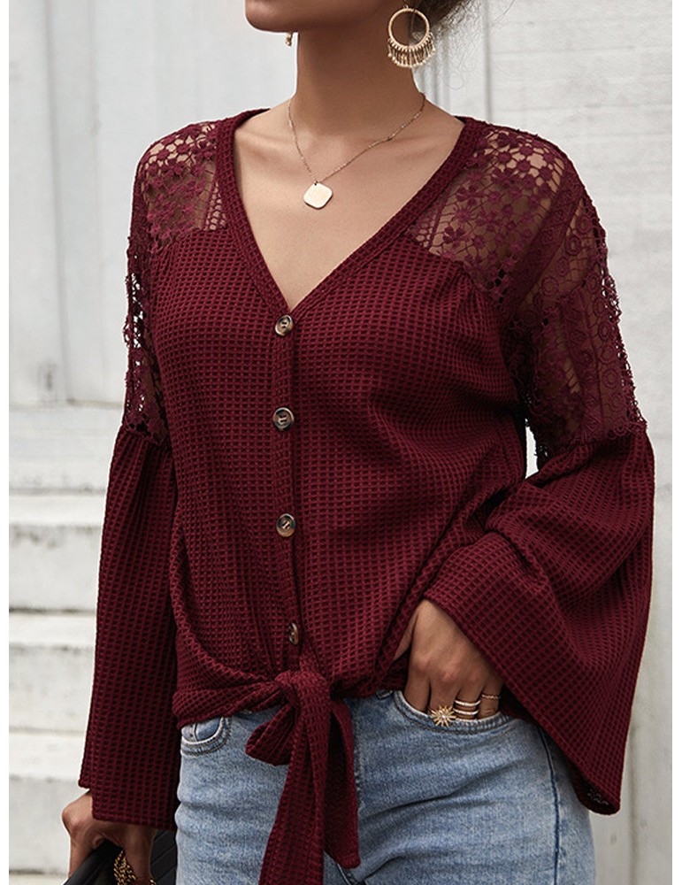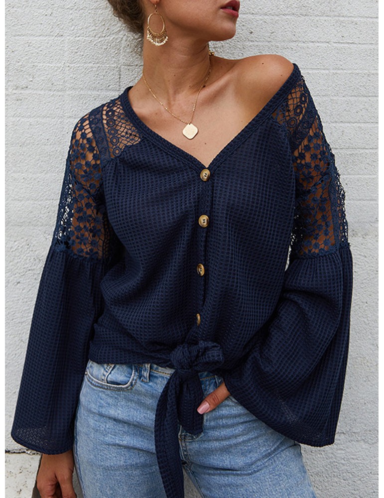 Lace Patchwork Hollow Long Sleeve Sweater