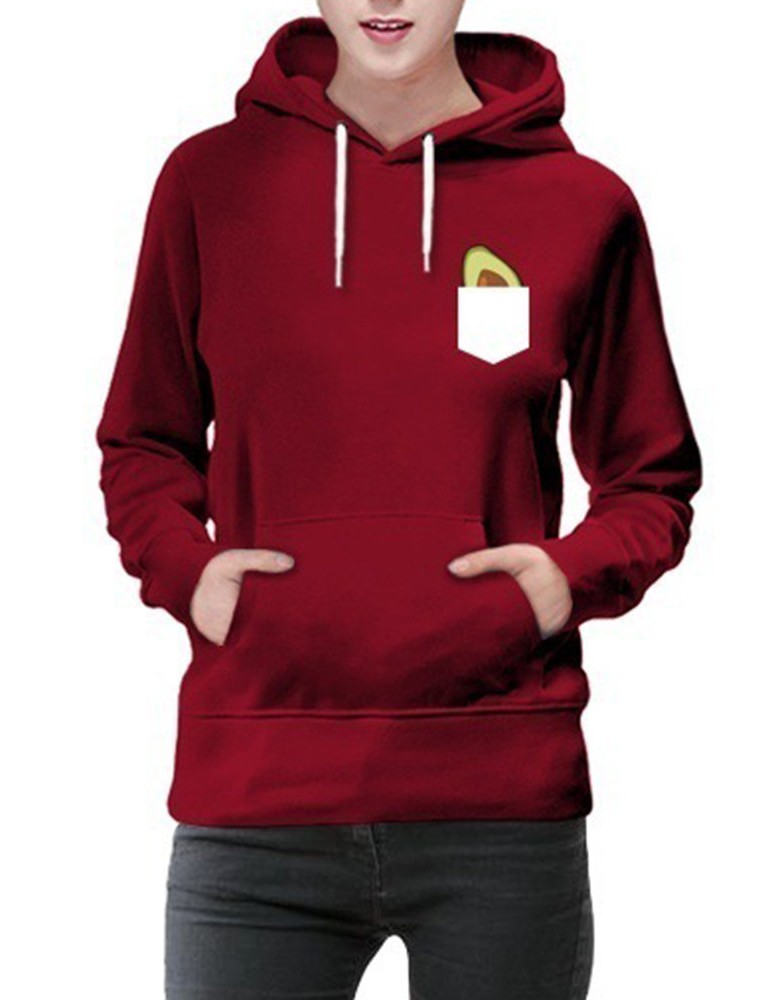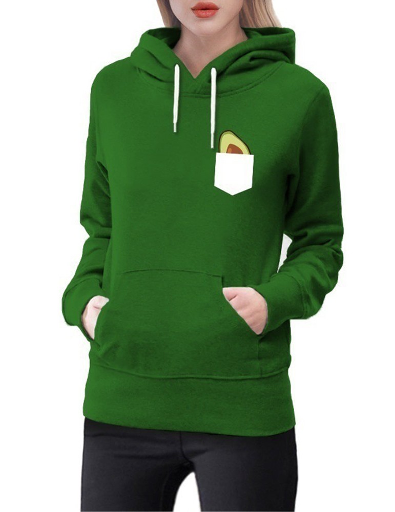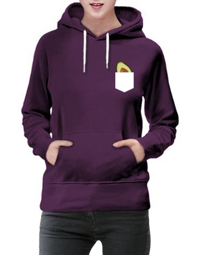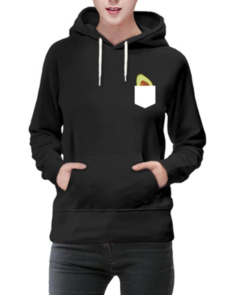 Print Avocado Long Sleeve Hooded Sweatshirt