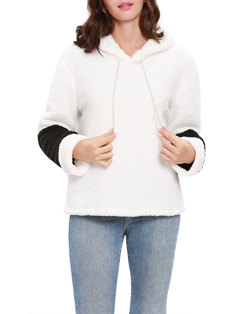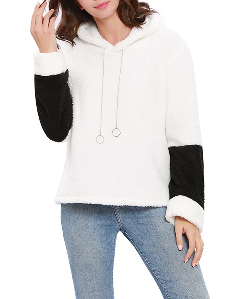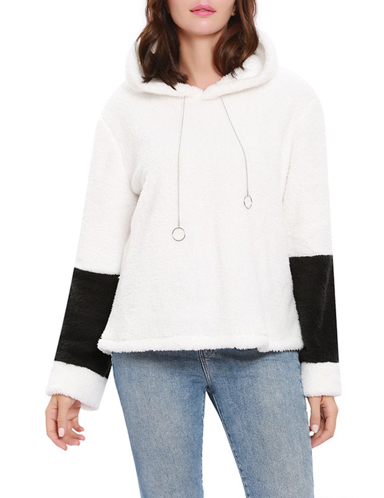 Fleece Patchwork Two Tone Hooded Sweatshirt