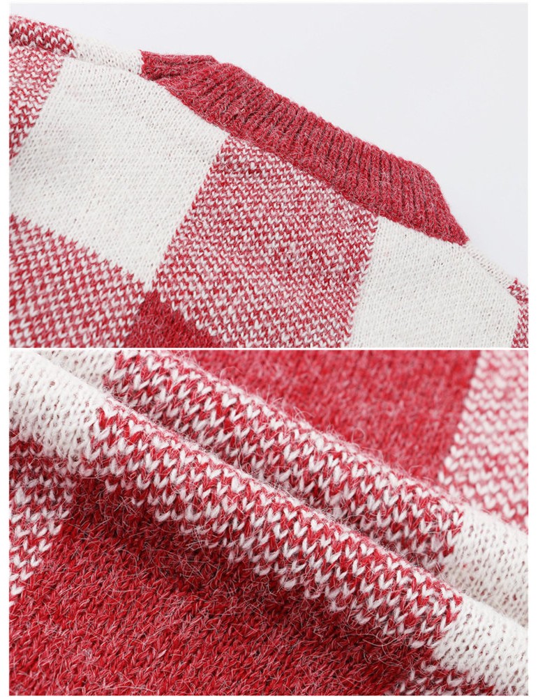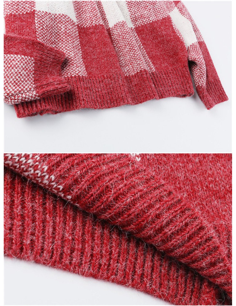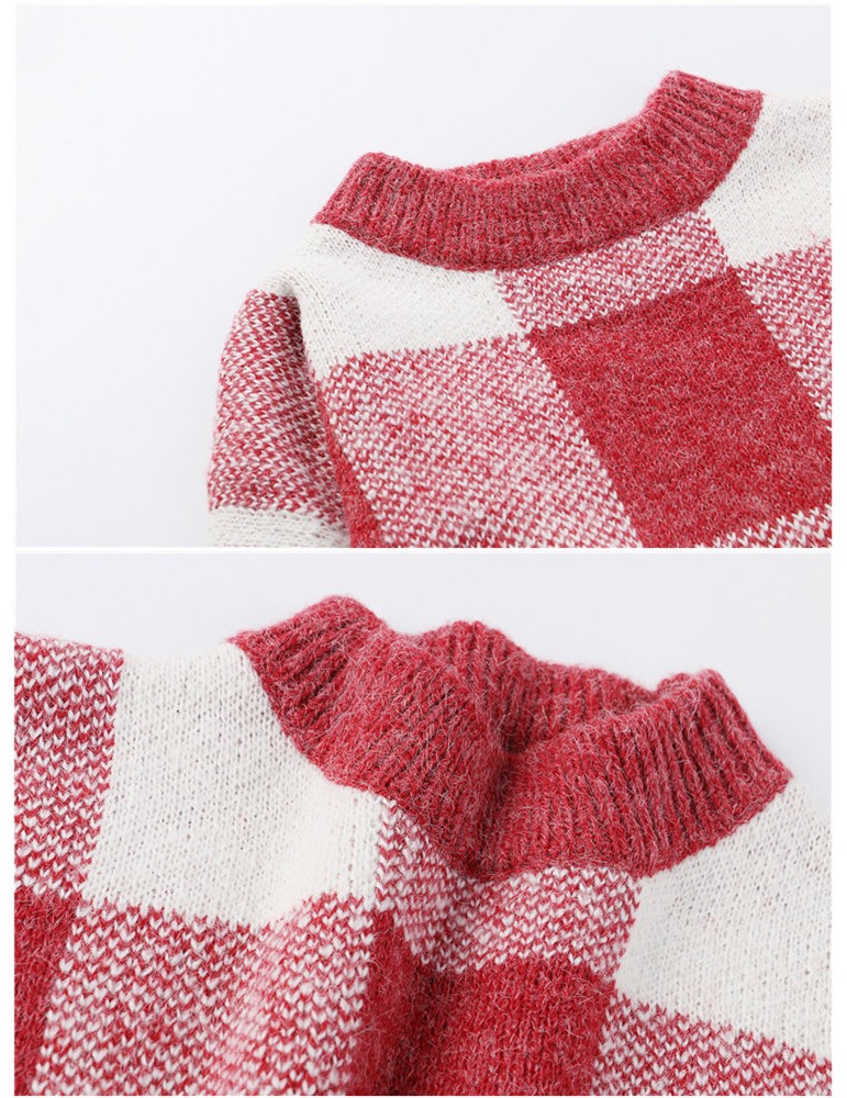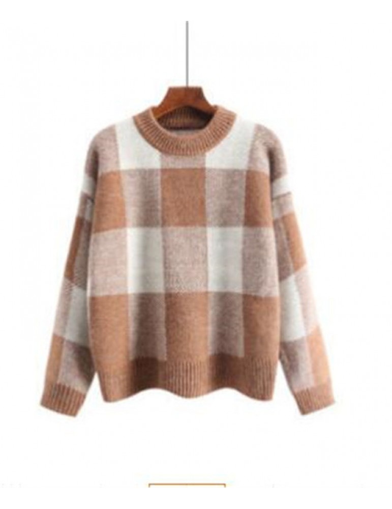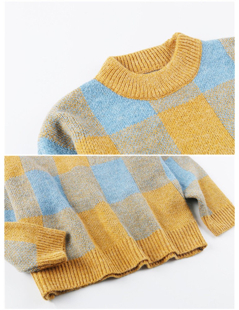 Long Sleeve O-neck Plaid Pullovers Sweater