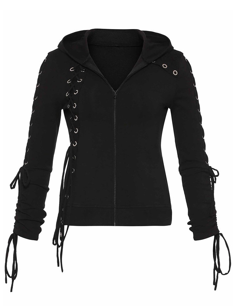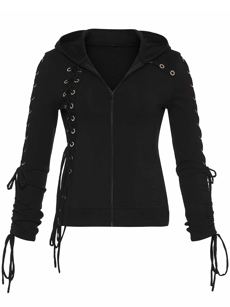 Solid Color Chest Lace Hooded Sweatshirts For Women