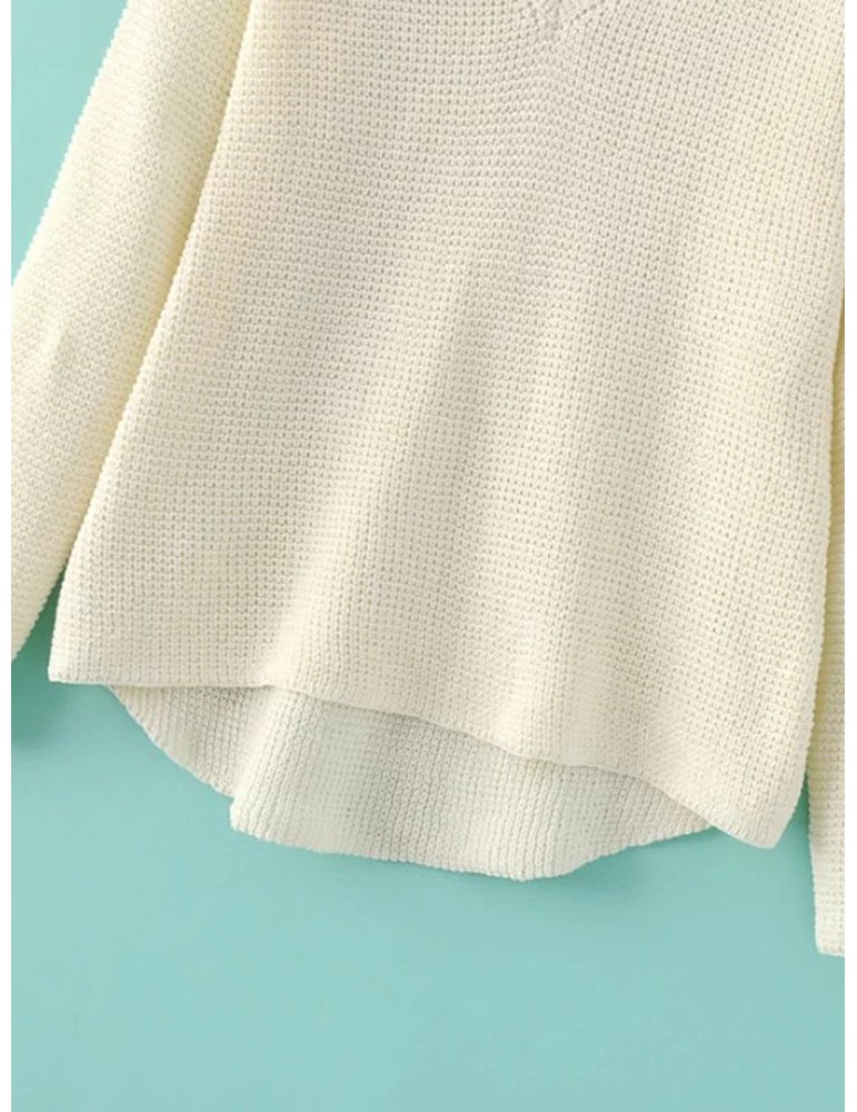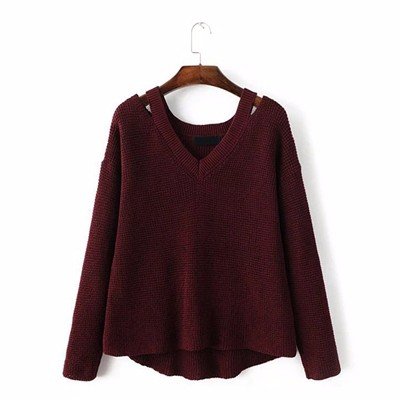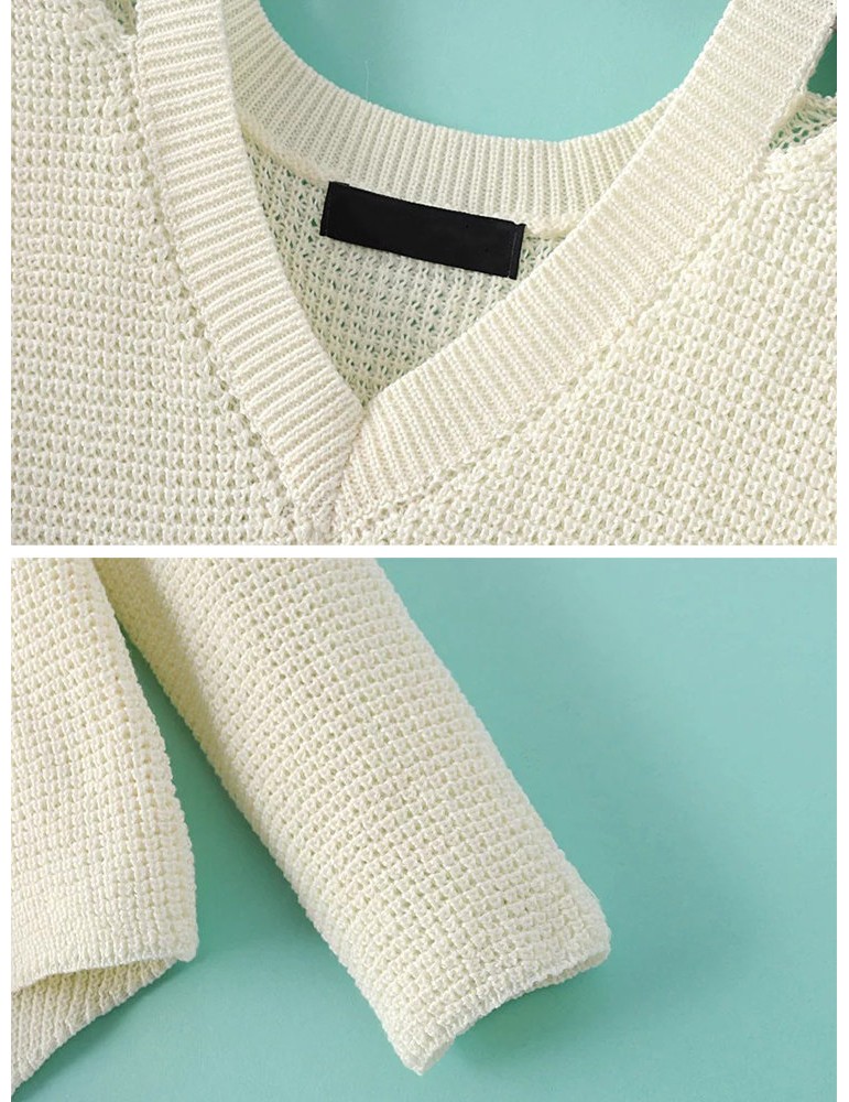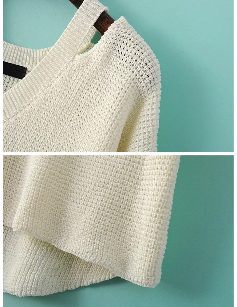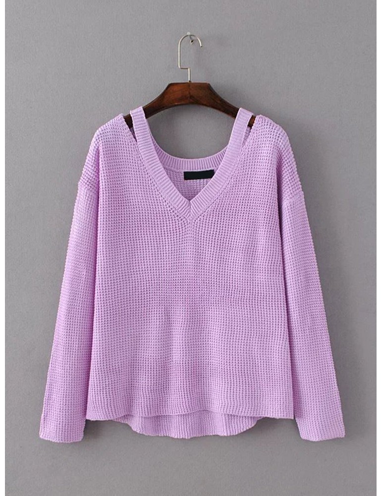 Women Casual Cold Shoulder Loose V-neck Long Sleeve Sweater
