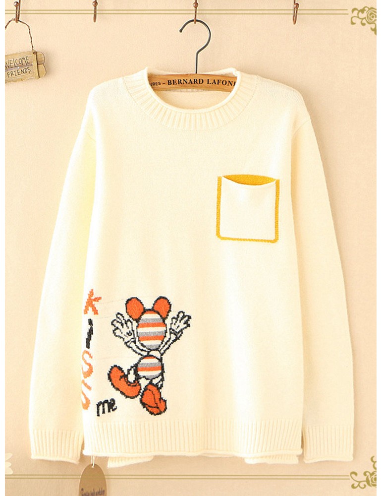 Cartoon Pullover Long Sleeve Crew Neck Sweater For Women