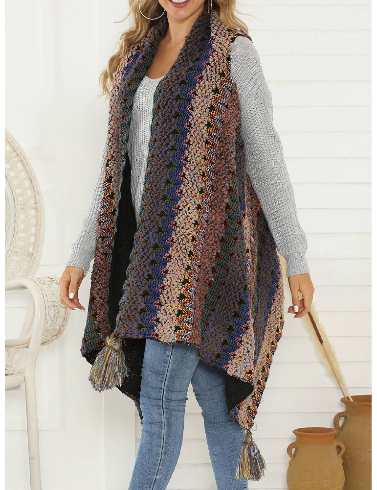 Tassels Multicolor Irregular Sleeveless Cardigan For Women