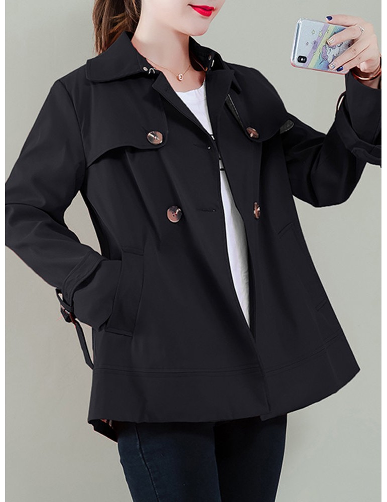 Button Solid Color Long Sleeve Lapel Casual Jacket