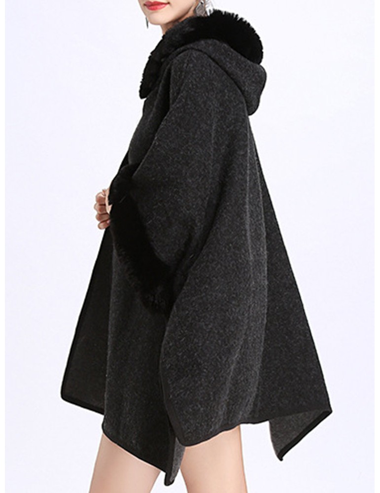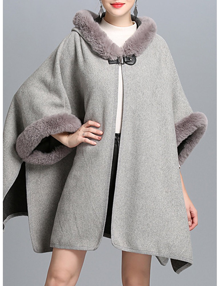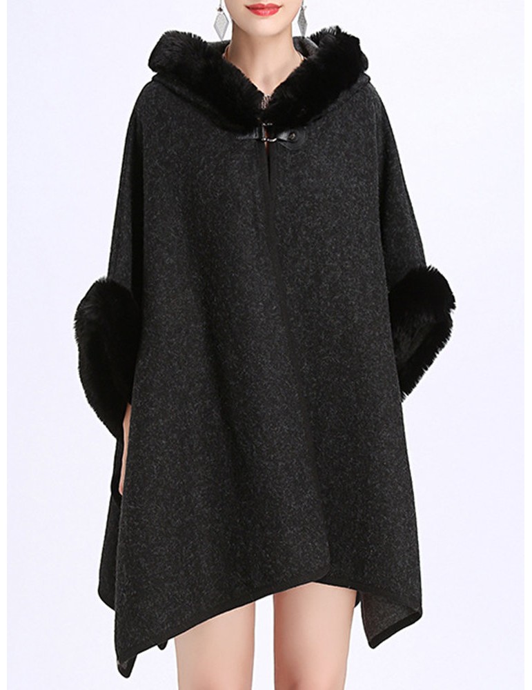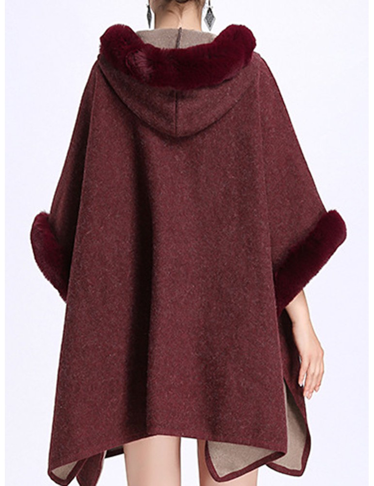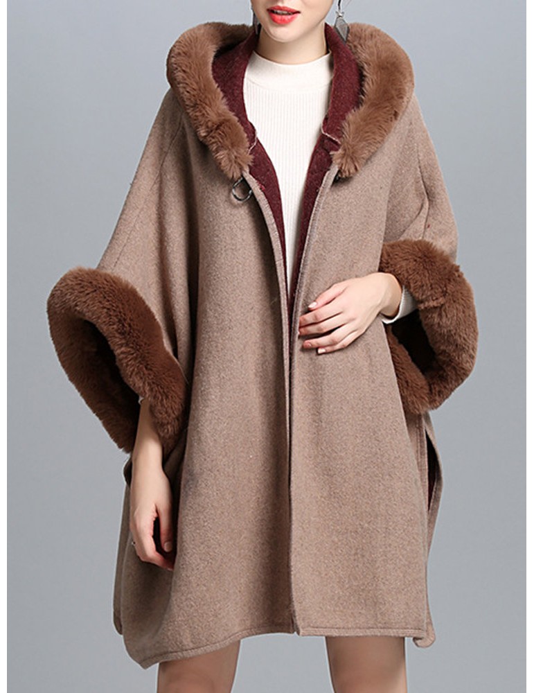 Elegant Faux Fur Patchwork Hooded Women Cloak Coats