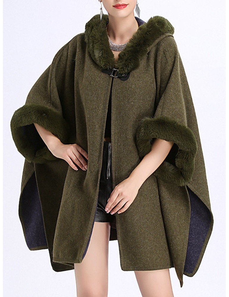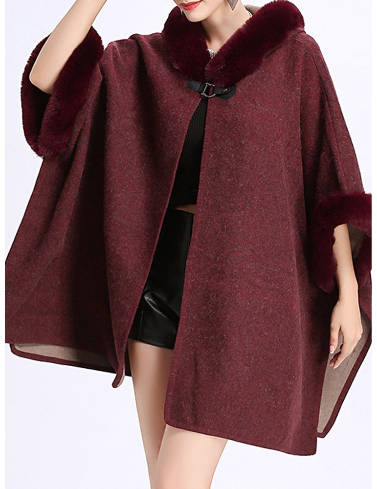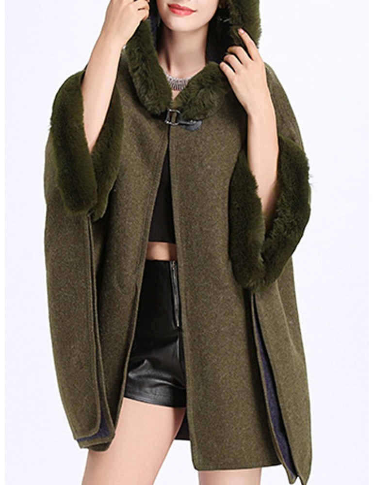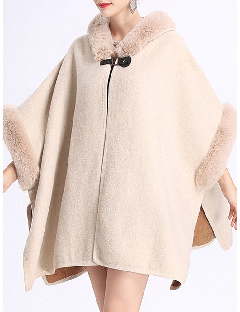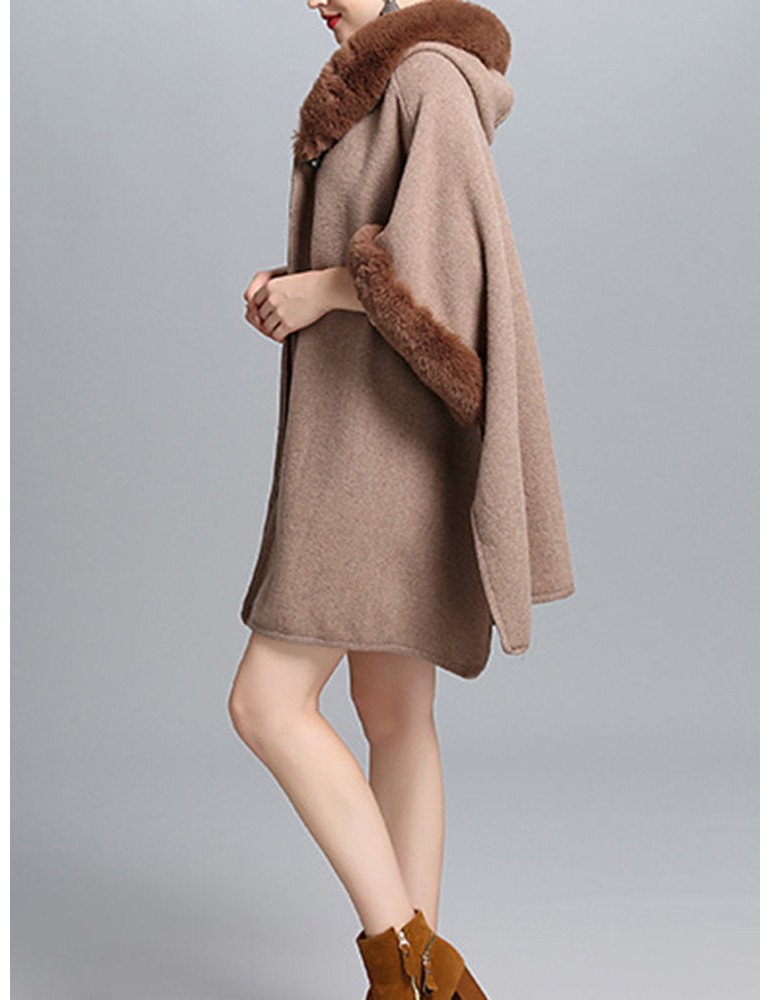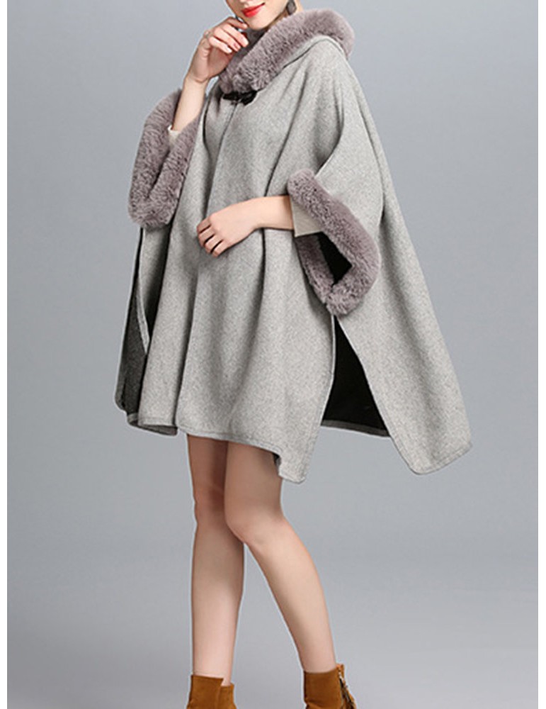 Elegant Faux Fur Patchwork Hooded Women Cloak Coats