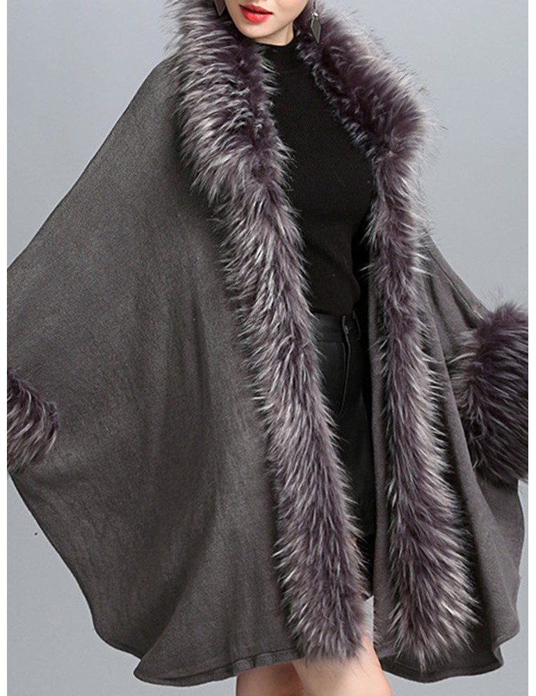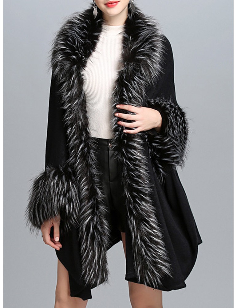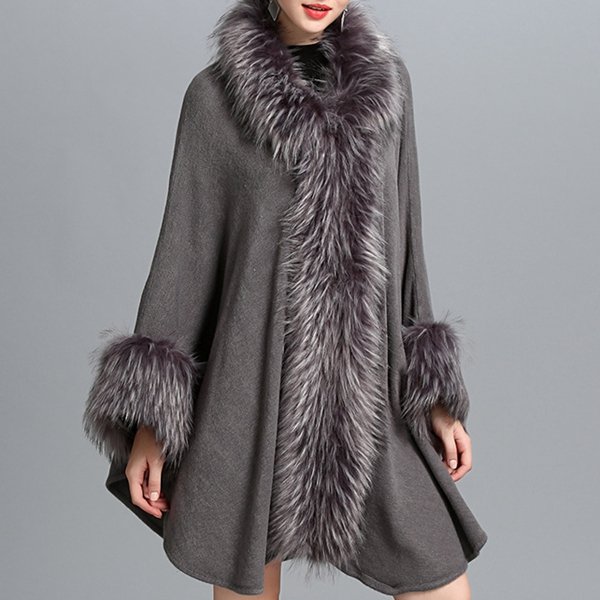 Elegant Knitting Faux Fur Patchwork Irregular Women Cloak Coats