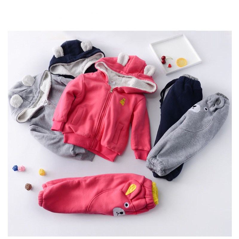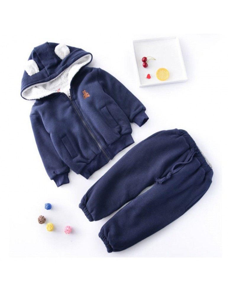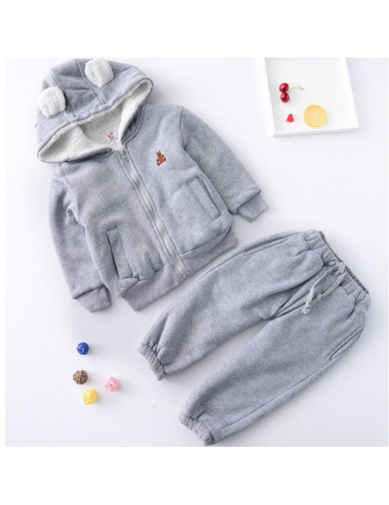 Cute Bear Pattern Girls Boys Hooded Coat Pants Sports Sets For 1Y-7Y