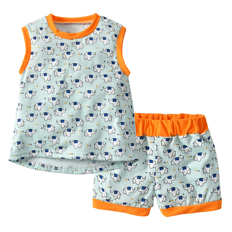 Elephant Print Toddler Girls Clothing Set Tops Vest + Shorts Outfits Clothes For 1Y-7Y