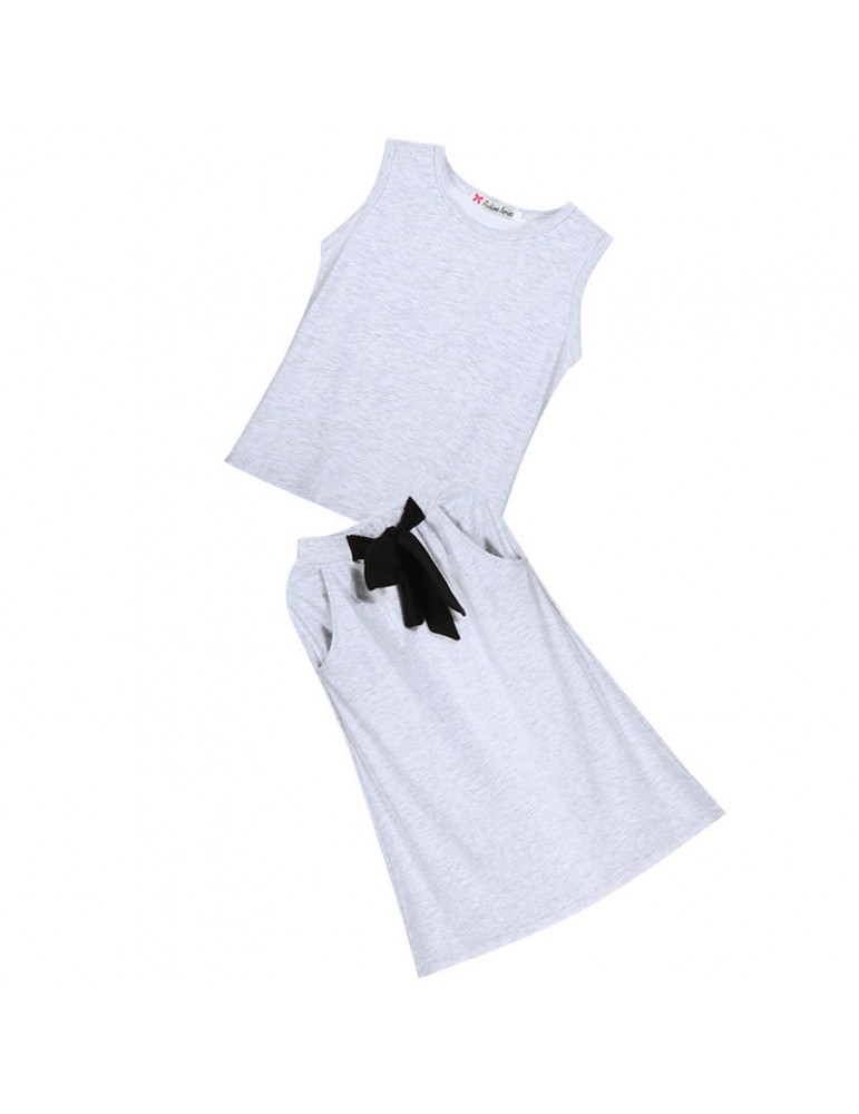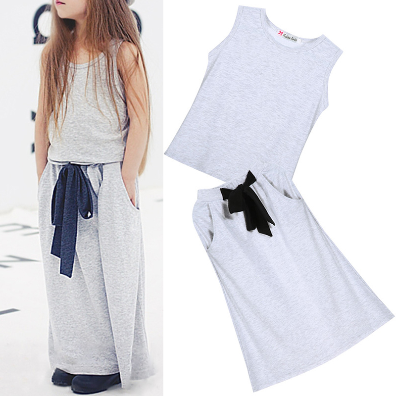 Soft Cotton Toddler Girls Casual Clothes Set Sleeveless Tops+ Long Skirts For 2Y-9Y